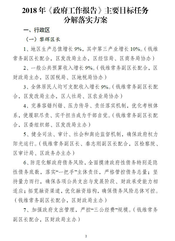 區(qū)政府關(guān)于印發(fā)2018年《政府工作報(bào)告》主要目標(biāo)任務(wù)分解落實(shí)方案的通知