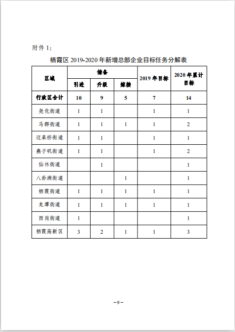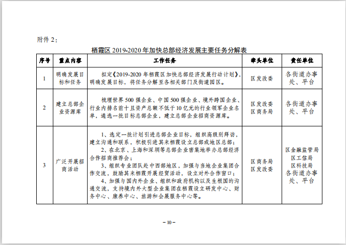 區政府關于印發2019-2020年棲霞區加快總部經濟發展行動計劃的通知