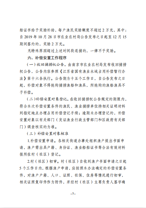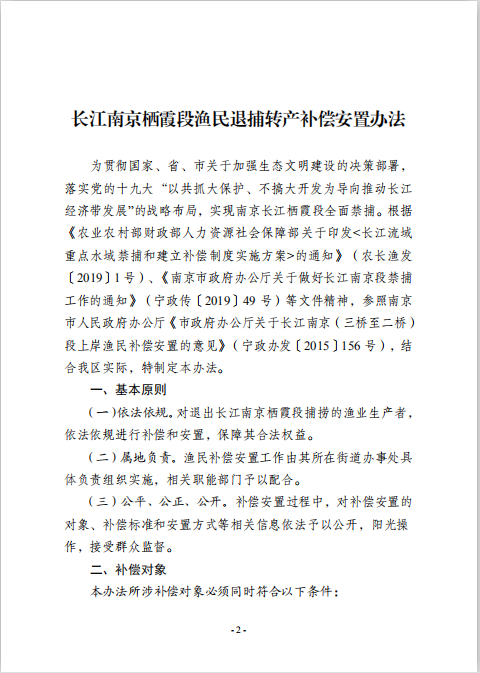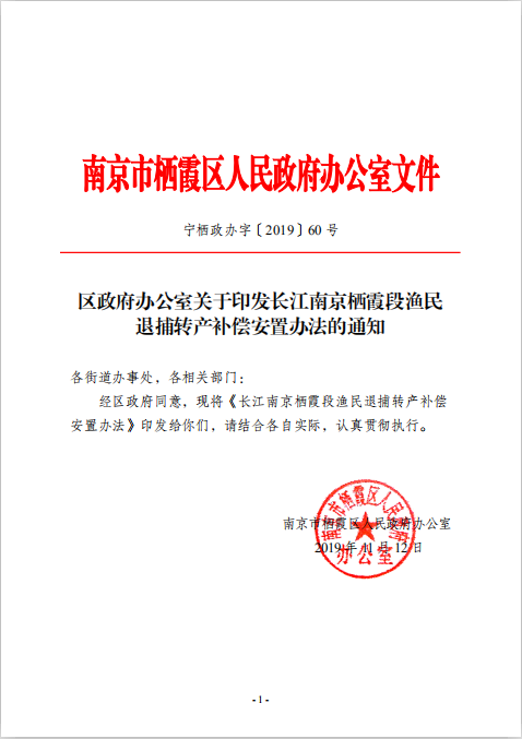 區政府辦公室關于印發長江南京棲霞段漁民退捕轉產補償安置方法的通知