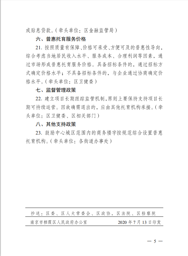 區(qū)政府關(guān)于印發(fā)棲霞區(qū)普惠托育服務(wù)政策支持清單的通知