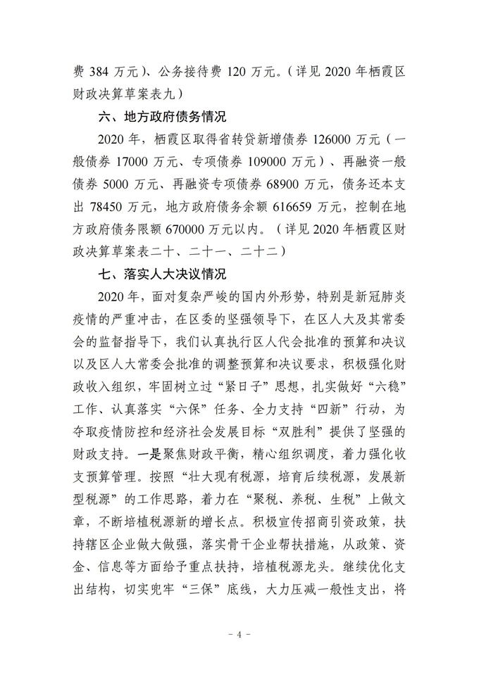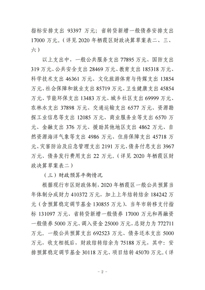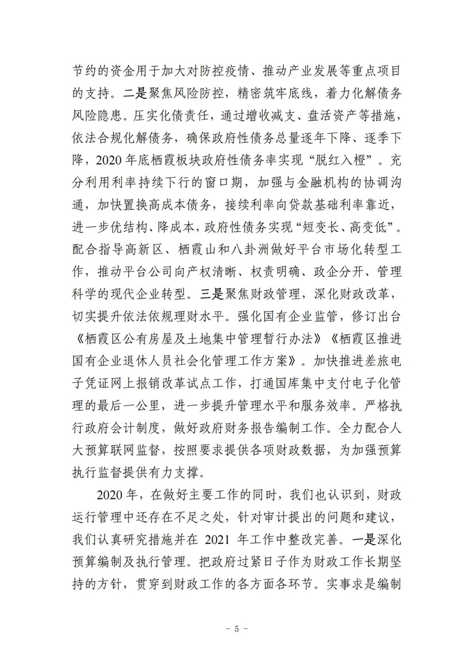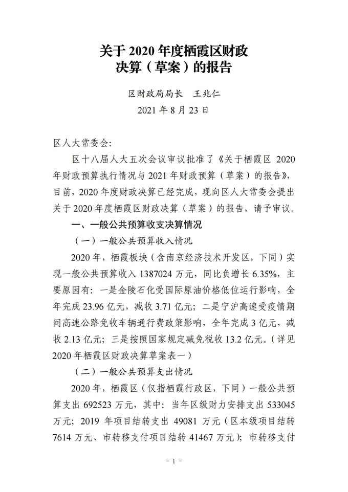 信息名稱:    關于2020年度棲霞區財政決算(草案)的報告