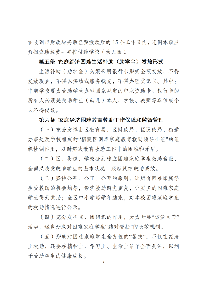 區(qū)政府關(guān)于印發(fā)《棲霞區(qū)困難家庭教育救助實(shí)施辦法》的通知
