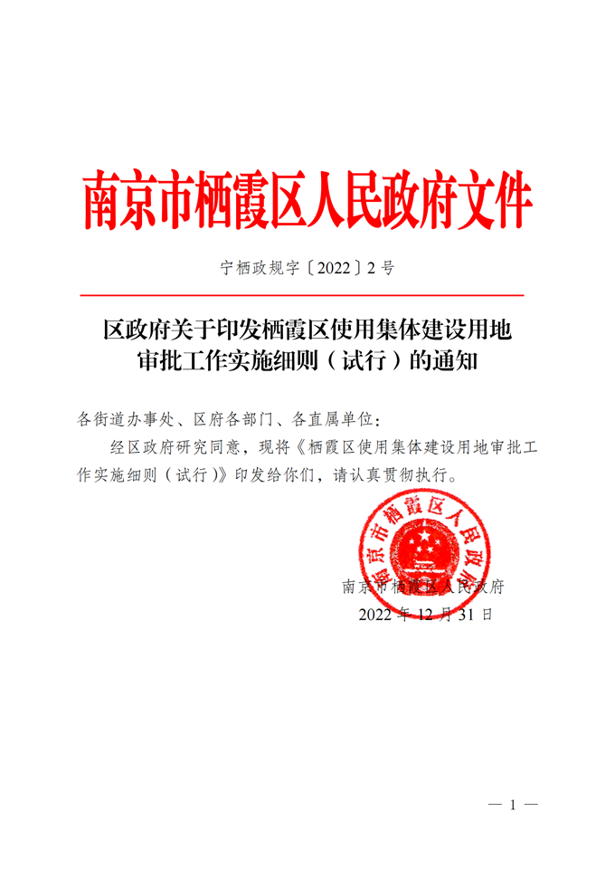 寧棲政規字〔2022〕2號 區政府關于印發棲霞區使用集體建設用地審批工作實施細則(試行)的通知.pdf