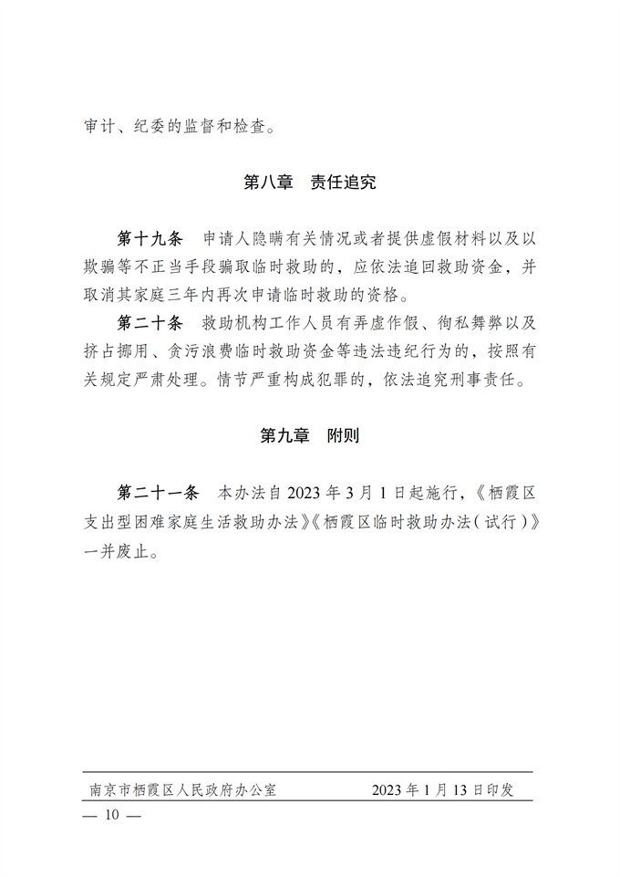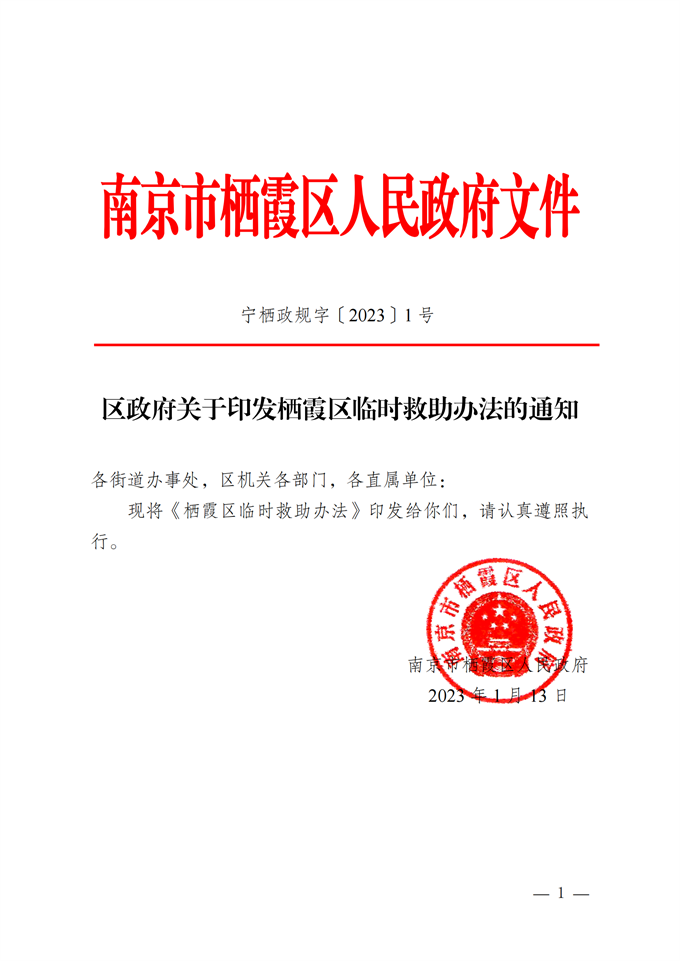寧棲政規(guī)字〔2023〕1號 區(qū)政府關(guān)于印發(fā)棲霞區(qū)臨時救助辦法的通知