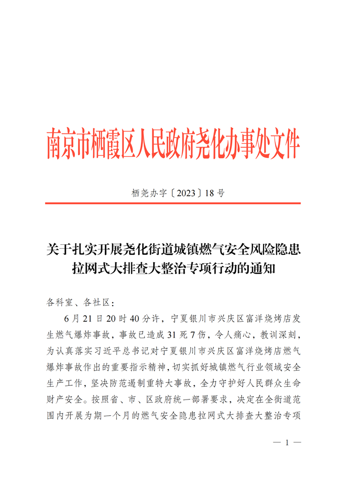 關于扎實開展堯化街道城鎮燃氣安全風險隱患拉網式大排查大整治專項行動的通知