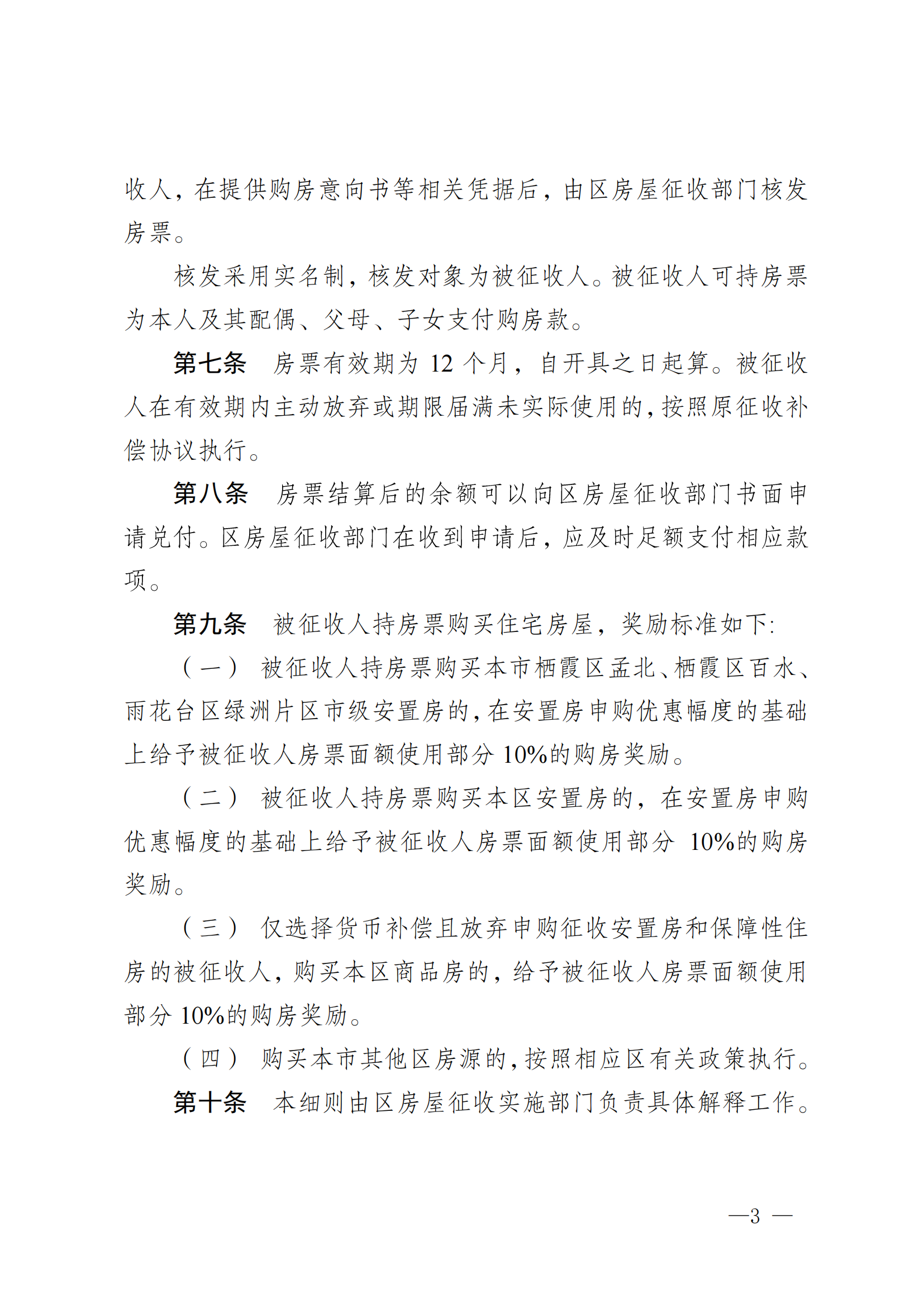 寧棲政規字〔2024〕1號 關于印發南京市棲霞區國有土地上住宅房屋征收房票安置操作細則的通知