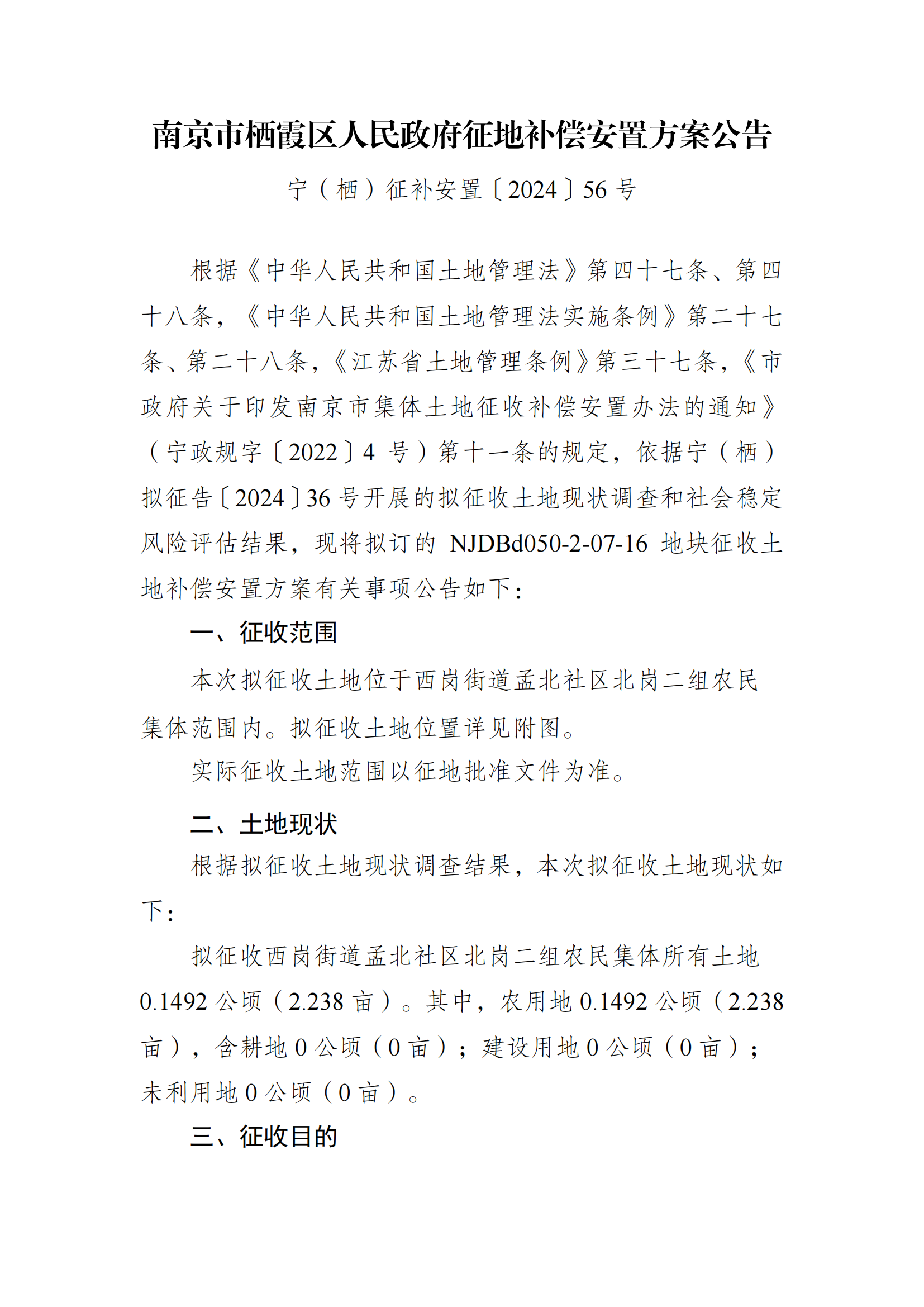 信息名稱:    寧(棲)征補安置〔2024〕56號-NJDBd050-2-07-16地塊