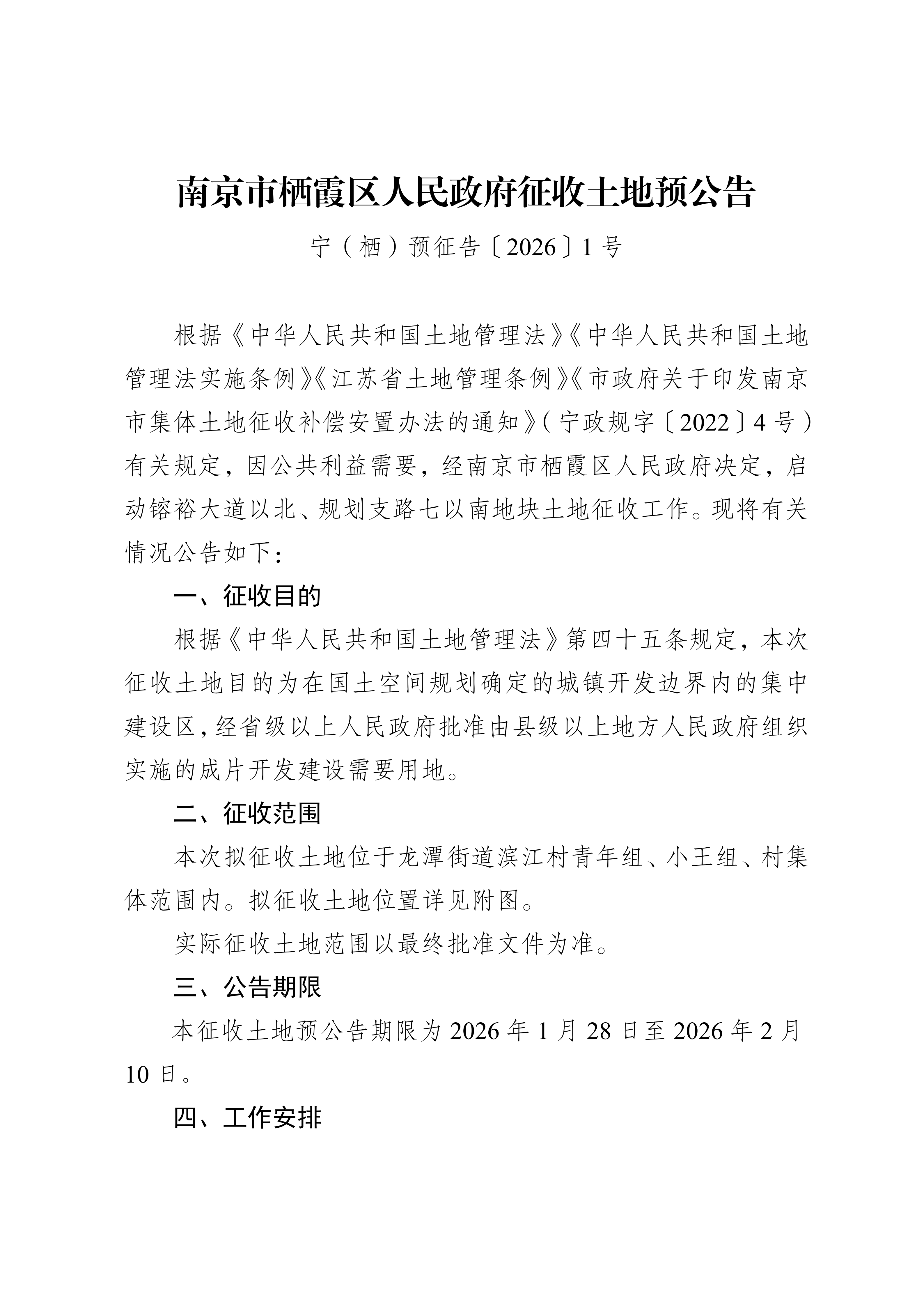 信息名稱:    寧(棲)預征告〔2026〕1號-镕裕大道以北、規劃支路七以南地塊