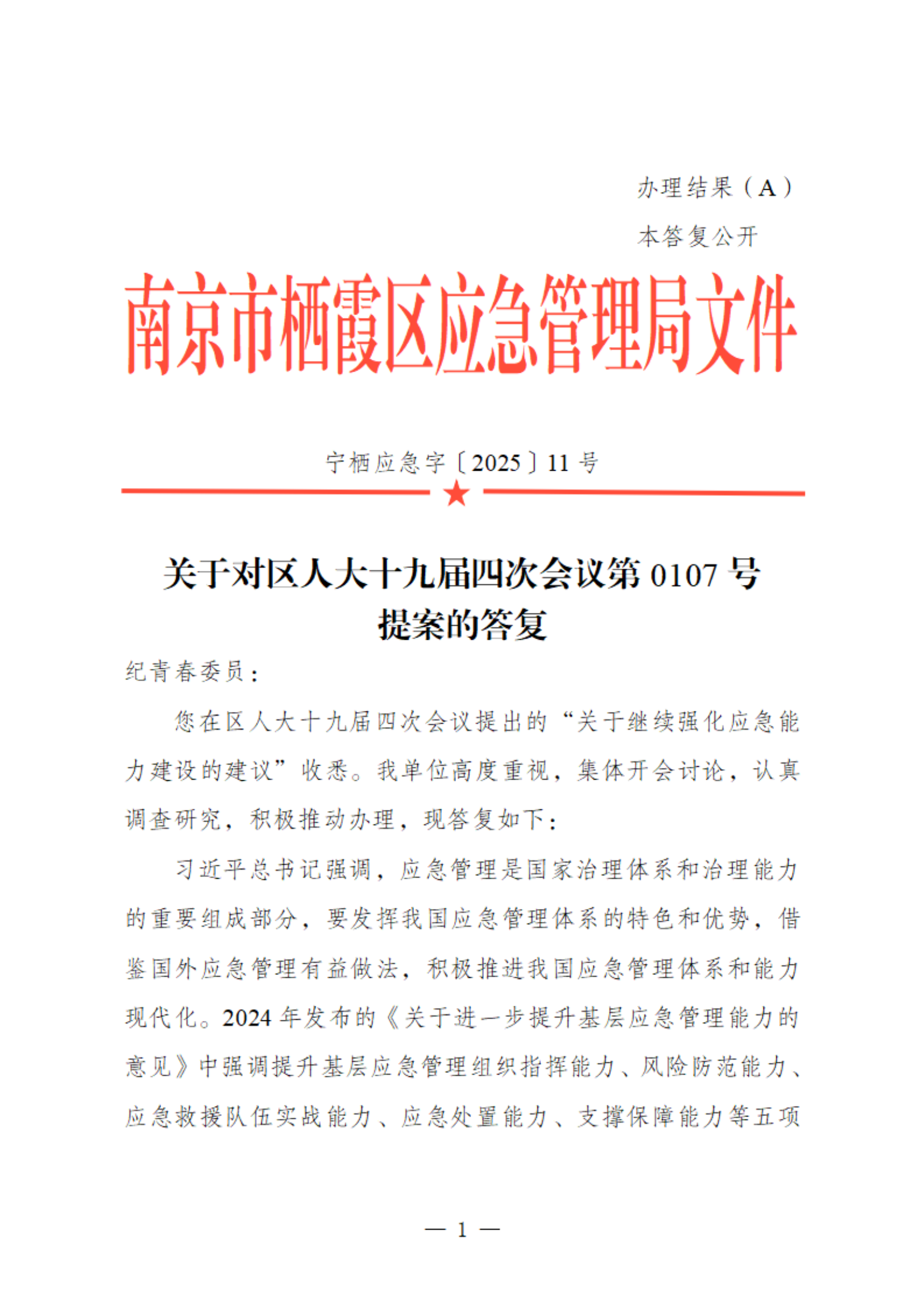 寧棲應急字〔2025〕11號關于對區人大十九屆四次會議第0107號提案的答復
