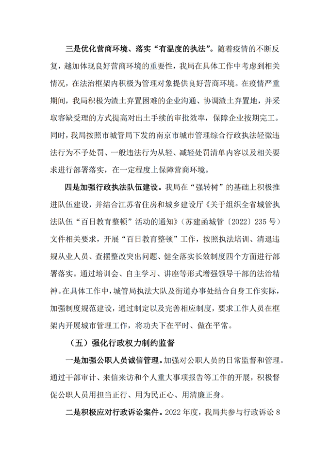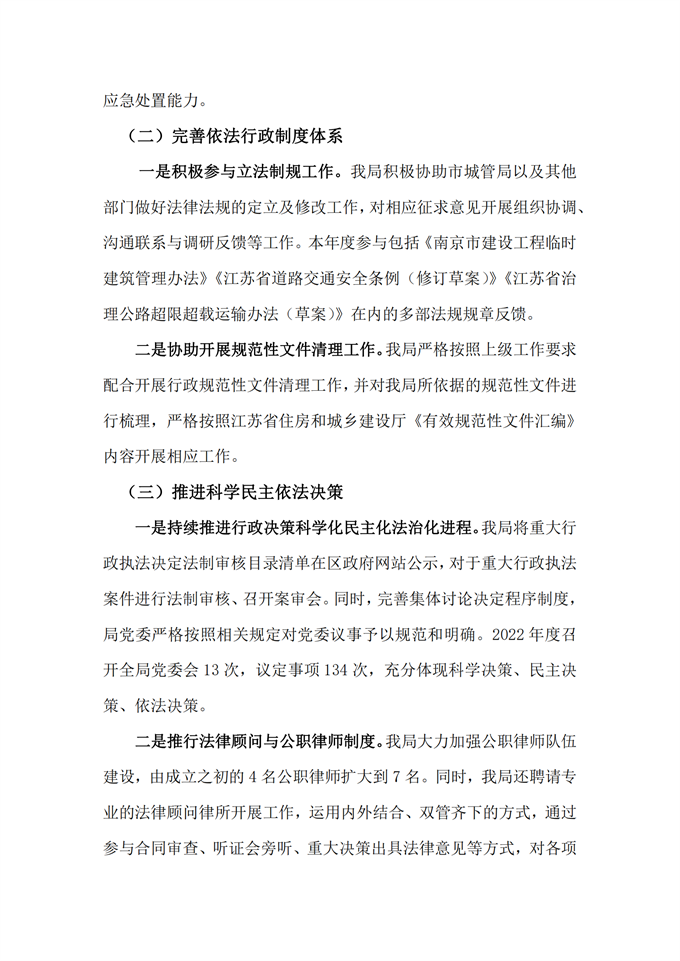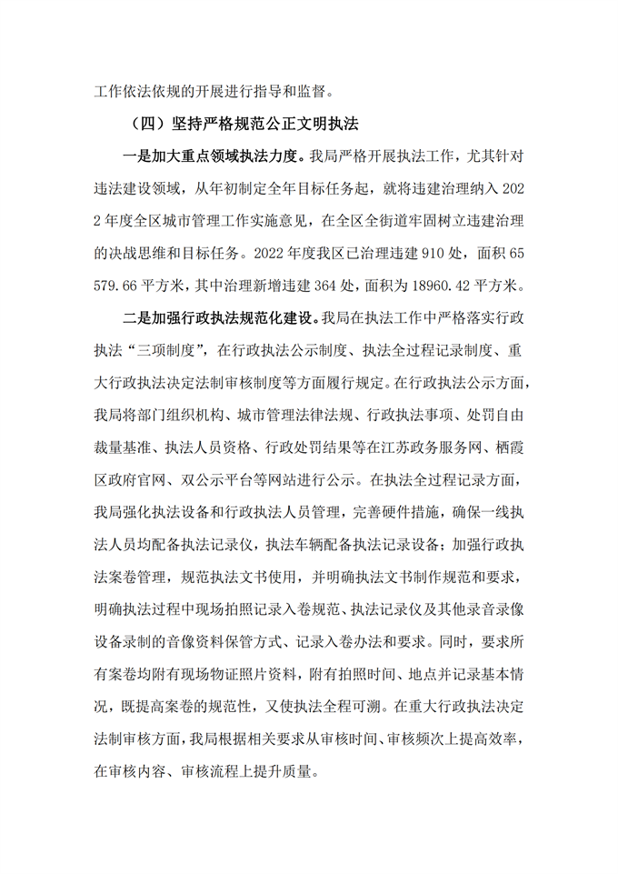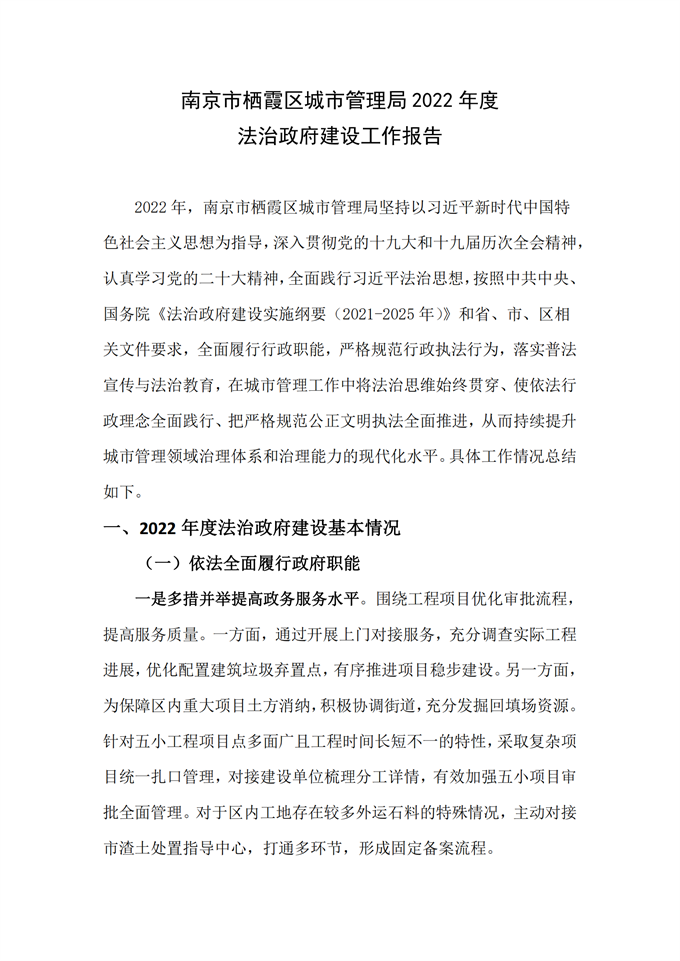 南京市棲霞區城市管理局2022年度法治政府建設工作報告