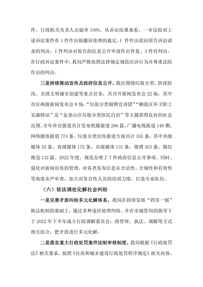 信息名稱:    南京市棲霞區城市管理局2022年度法治政府建設工作報告