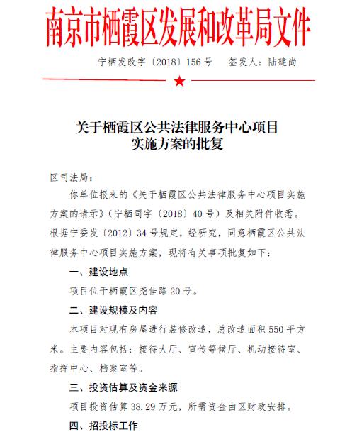 關(guān)于棲霞區(qū)公共法律服務(wù)中心項目實施方案的批復(fù)