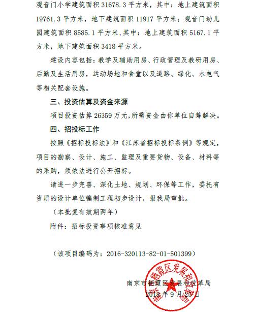 信息名稱:    關于燕子磯新城觀音門小學、幼兒園項目可行性研究報告的批復