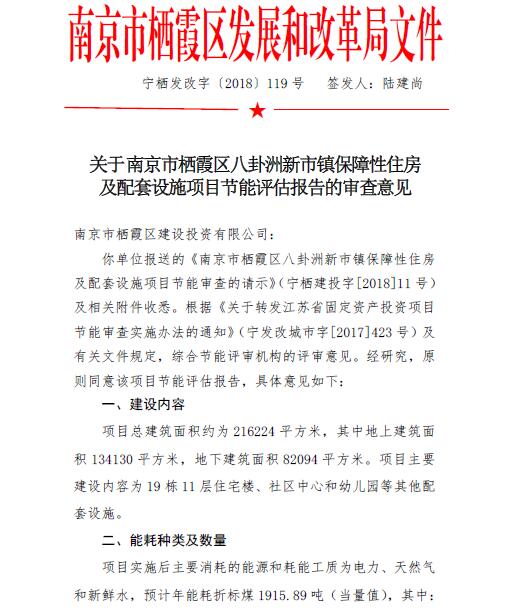 寧棲發改字〔2018〕119號 關于南京市棲霞區八卦洲新市鎮保障性住房及配套設施項目節能評估報告的審查意見.pdf
