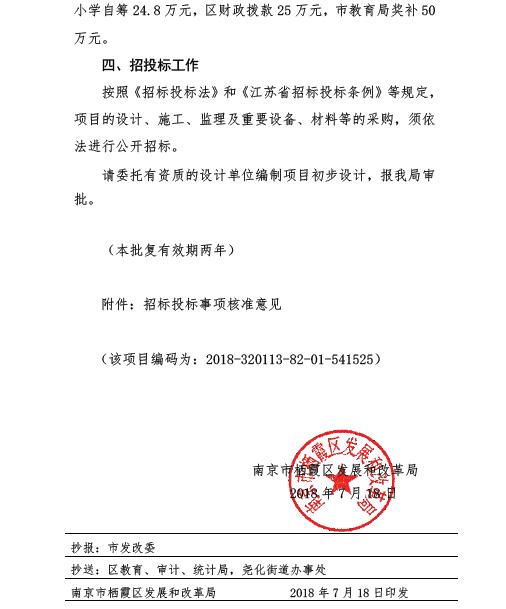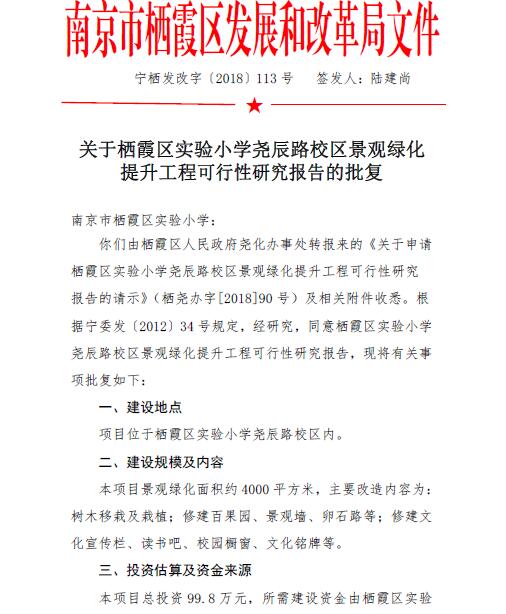 寧棲發(fā)改字〔2018〕113號 關于棲霞區(qū)實驗小學堯辰路校區(qū)景觀綠化提升工程可行性研究報告的批復.pdf