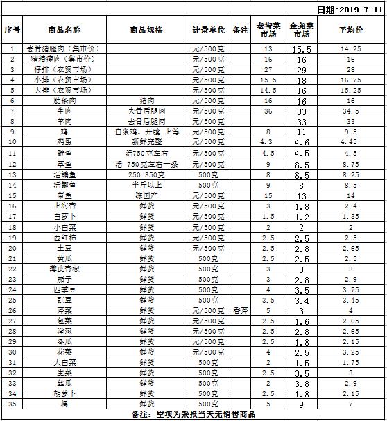 信息名稱:    棲霞區(qū)主要副食品價格變動測報表(7月11日)