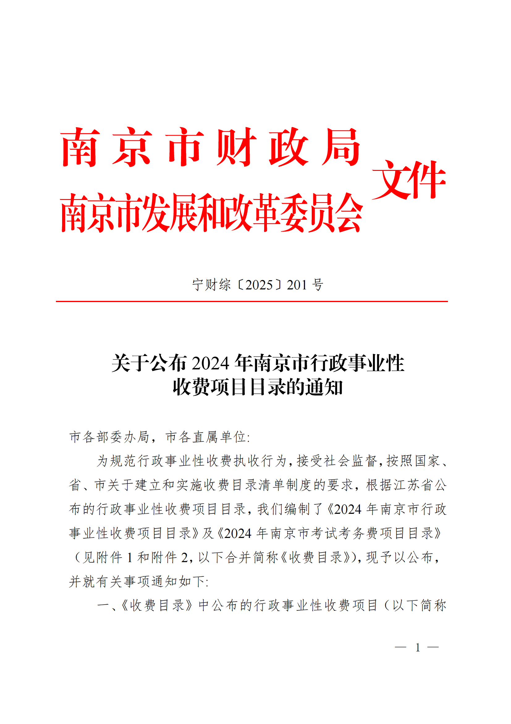 關于公布2024年南京市行政事業性收費項目目錄的通知(寧財綜〔2025〕201號).pdf