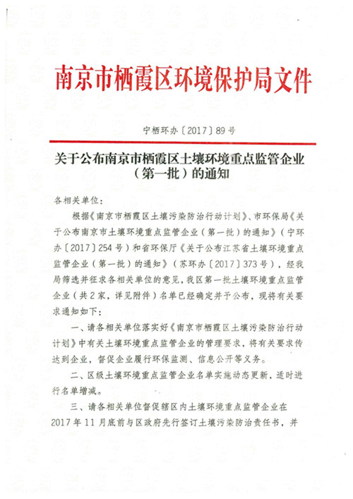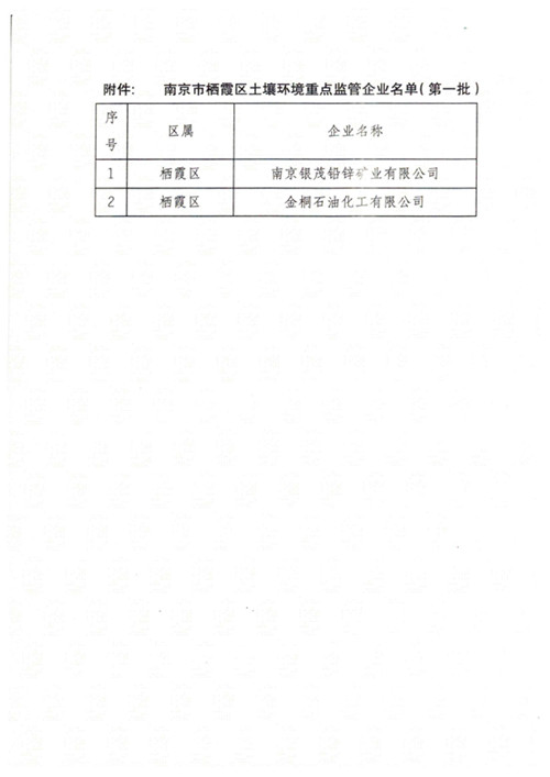 關于公布南京市棲霞區土壤環境重點監管企業(第一批)的通知