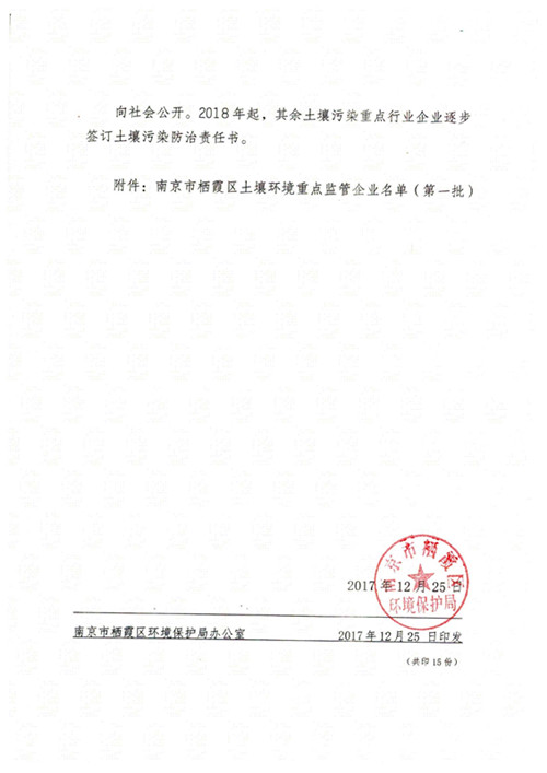 信息名稱:    關于公布南京市棲霞區土壤環境重點監管企業(第一批)的通知