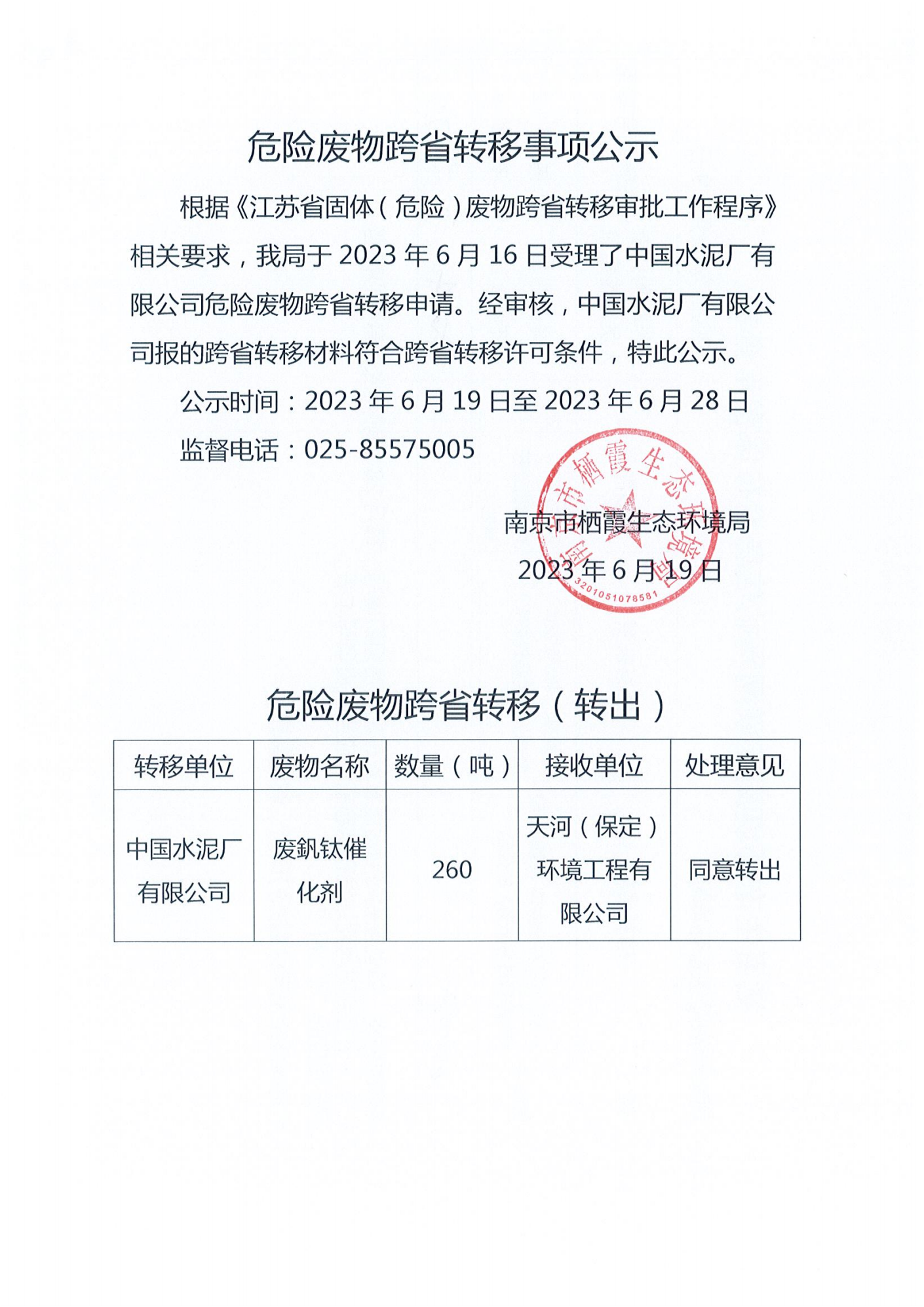 信息名稱:    危險廢物跨省轉(zhuǎn)移事項公示