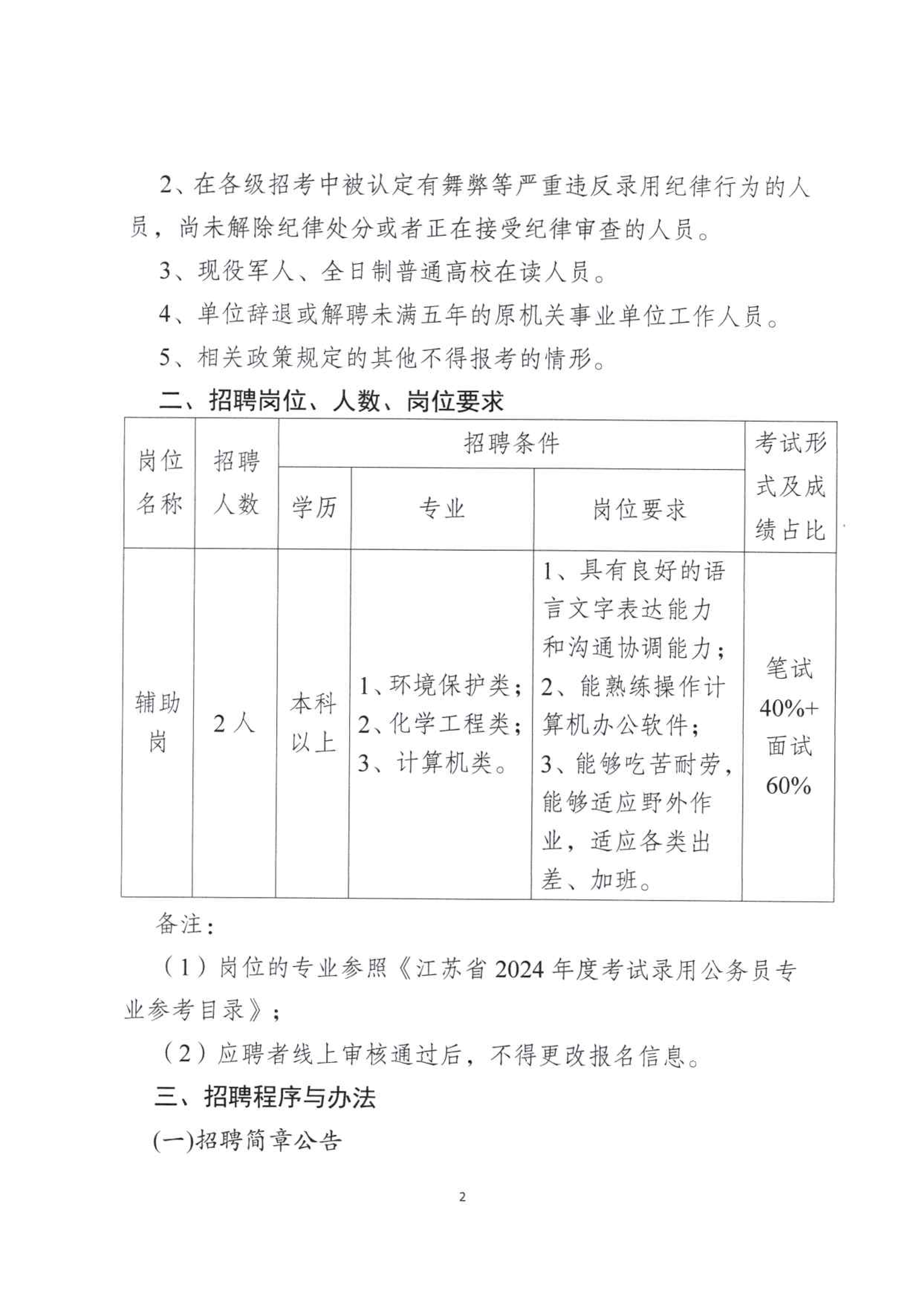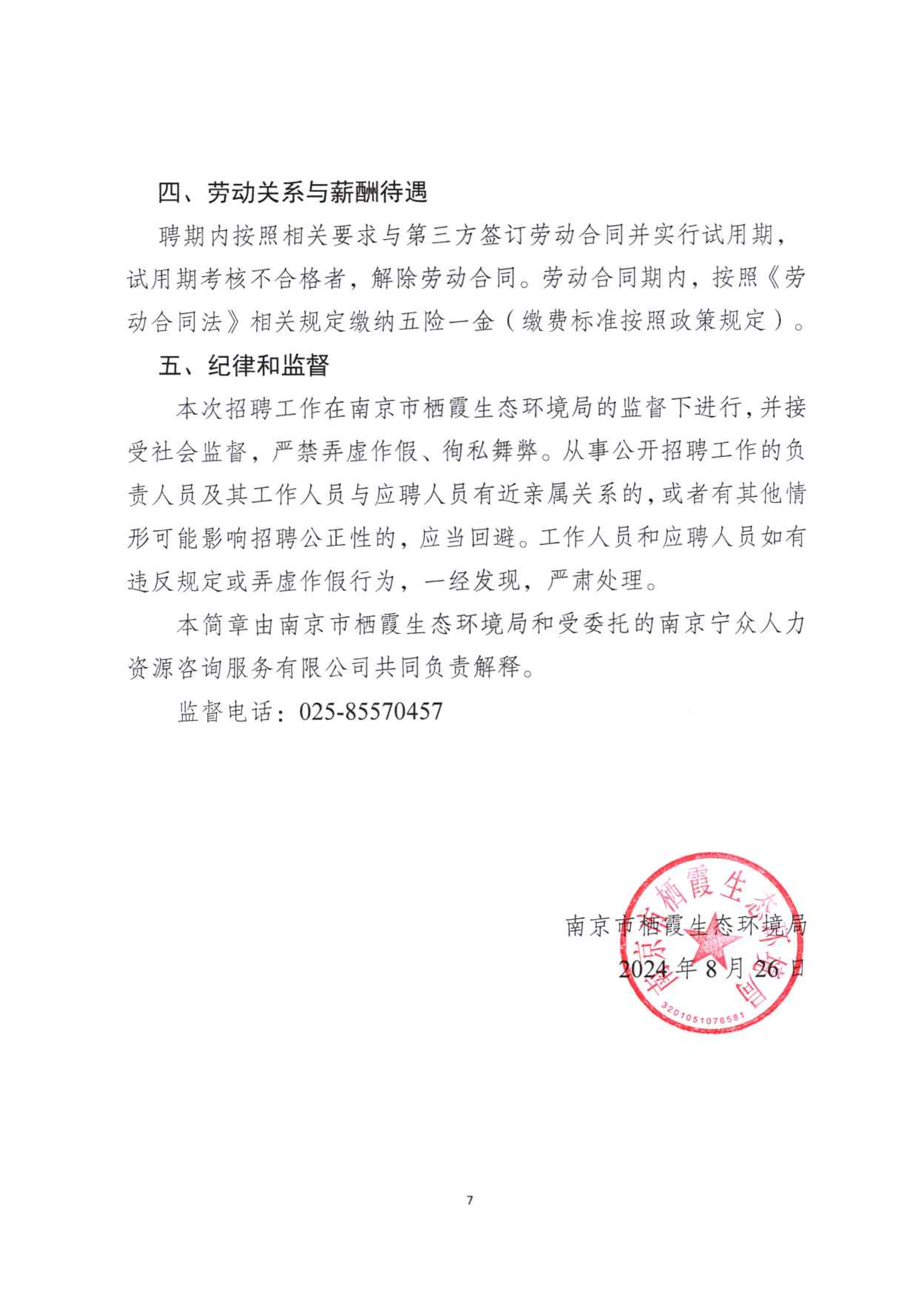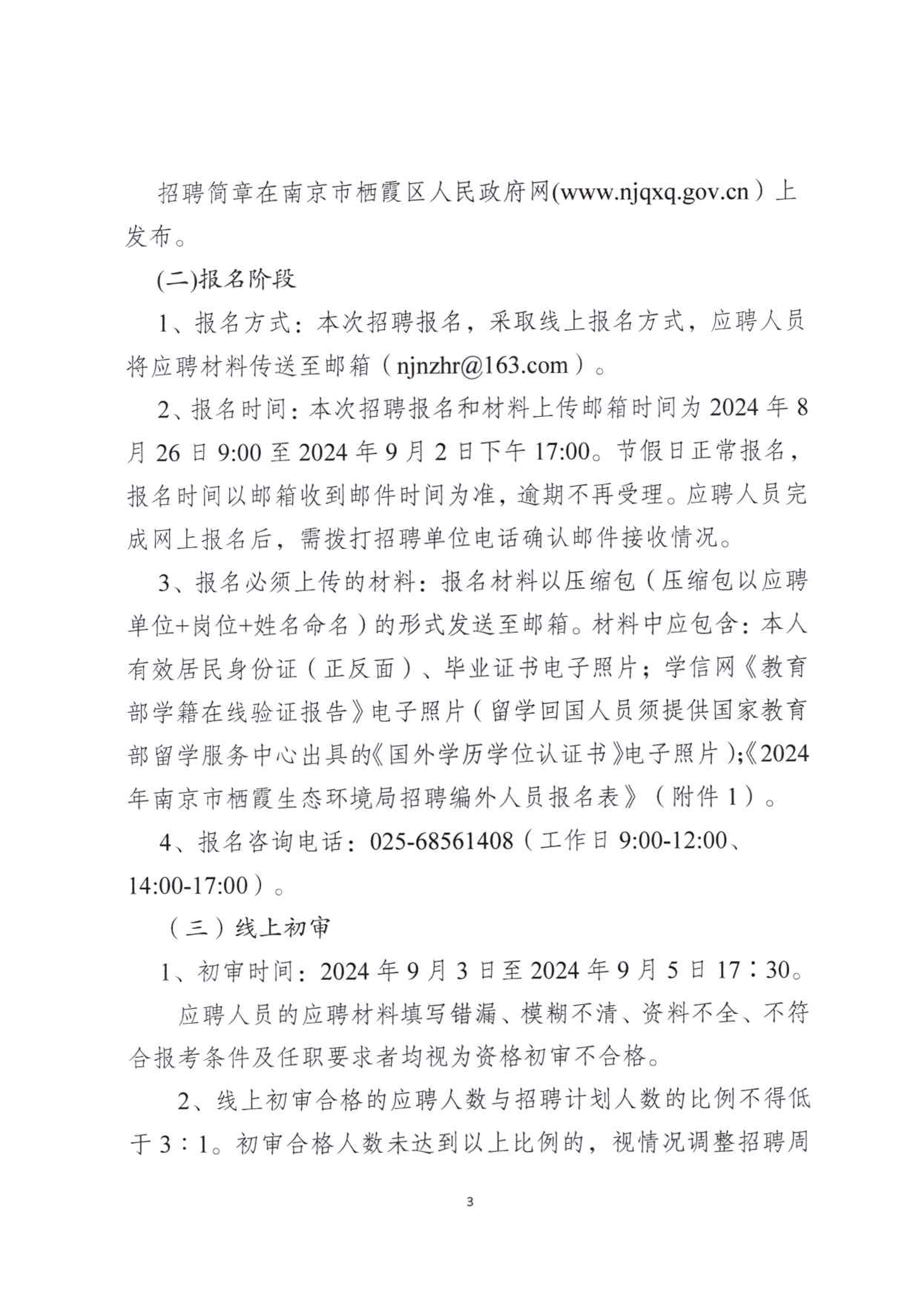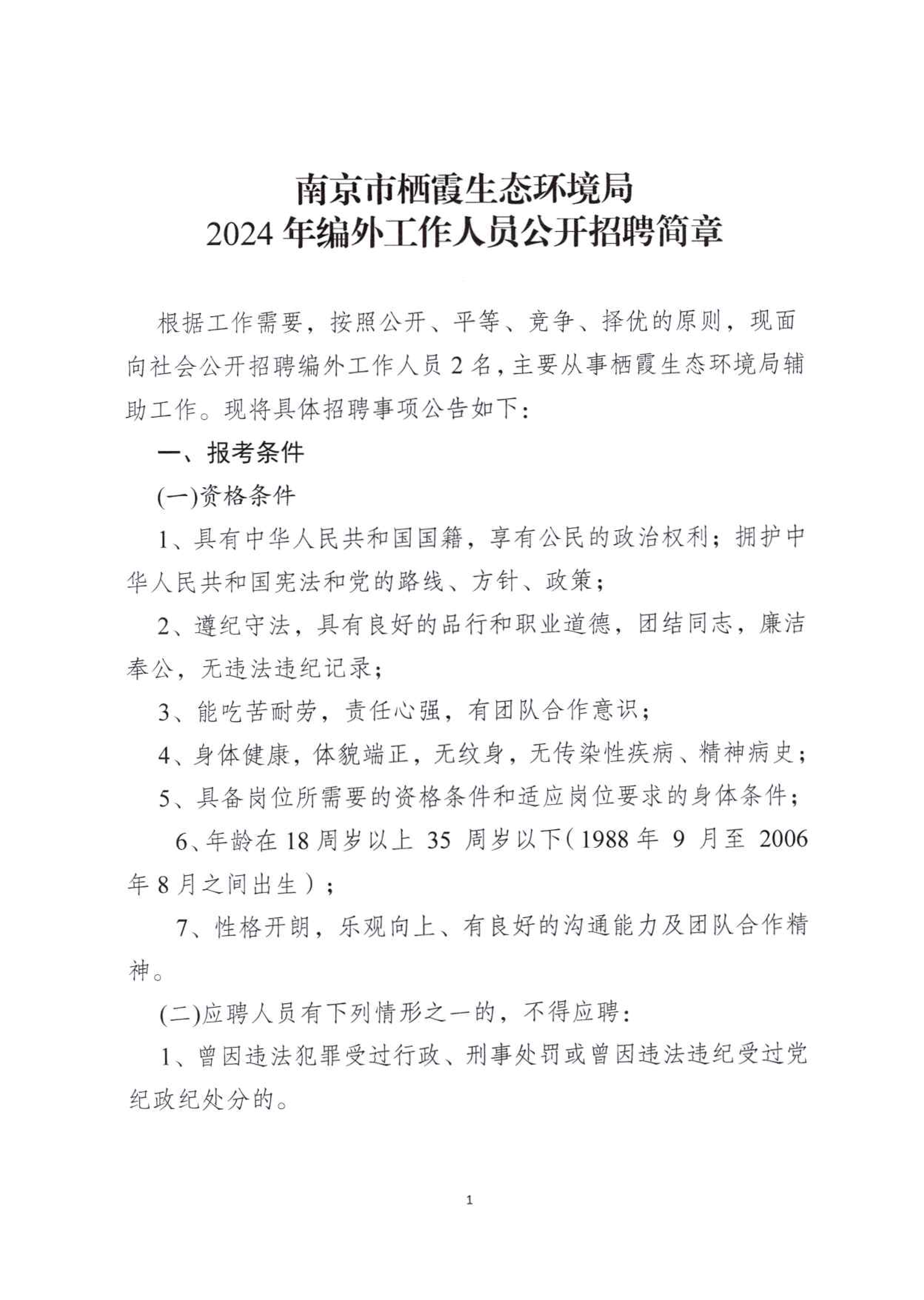 南京市棲霞生態環境局2024年編外工作人員公開招聘簡章