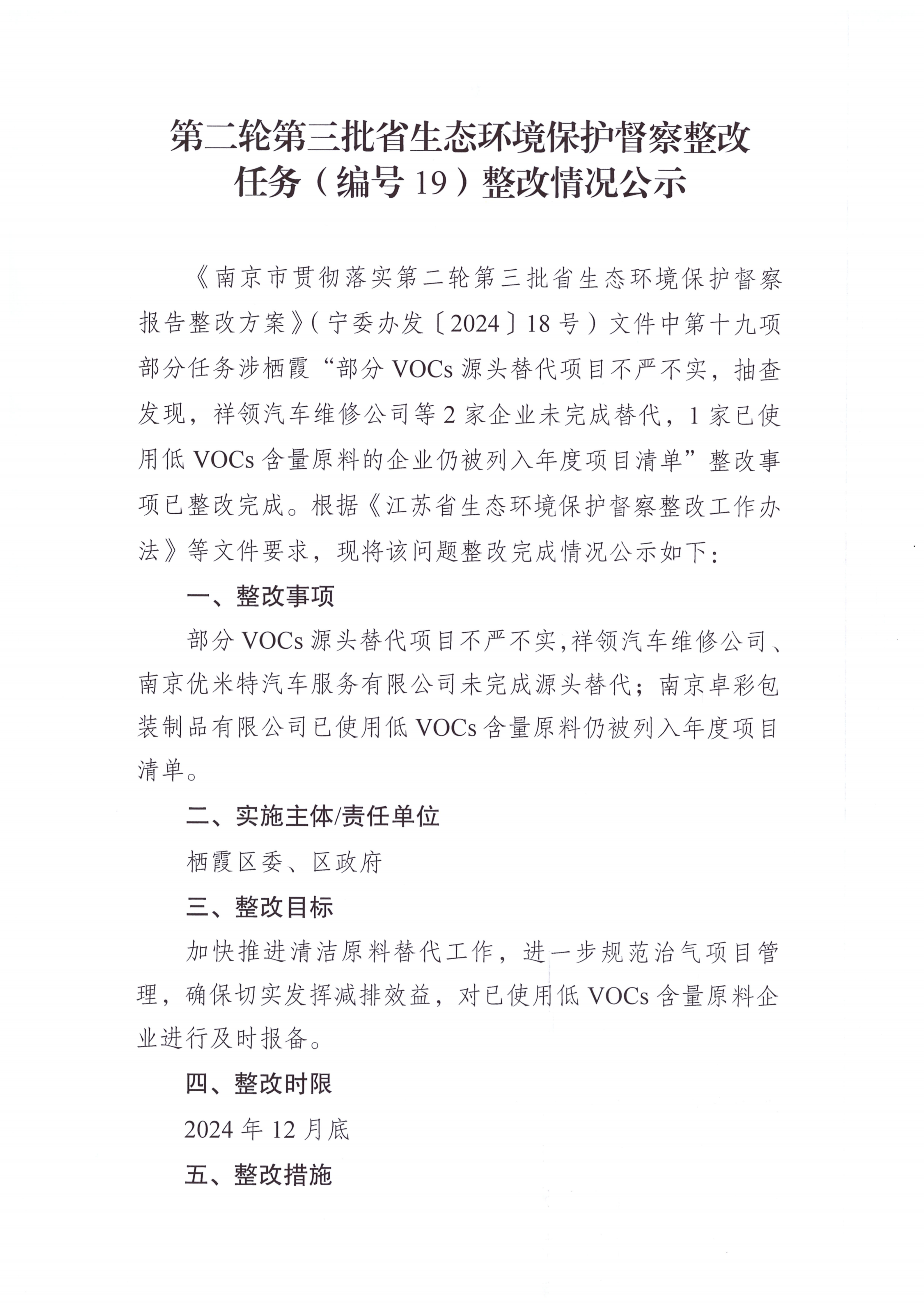 第二輪第三批省生態環境保護督察整改任務(編號19)整改情況公示