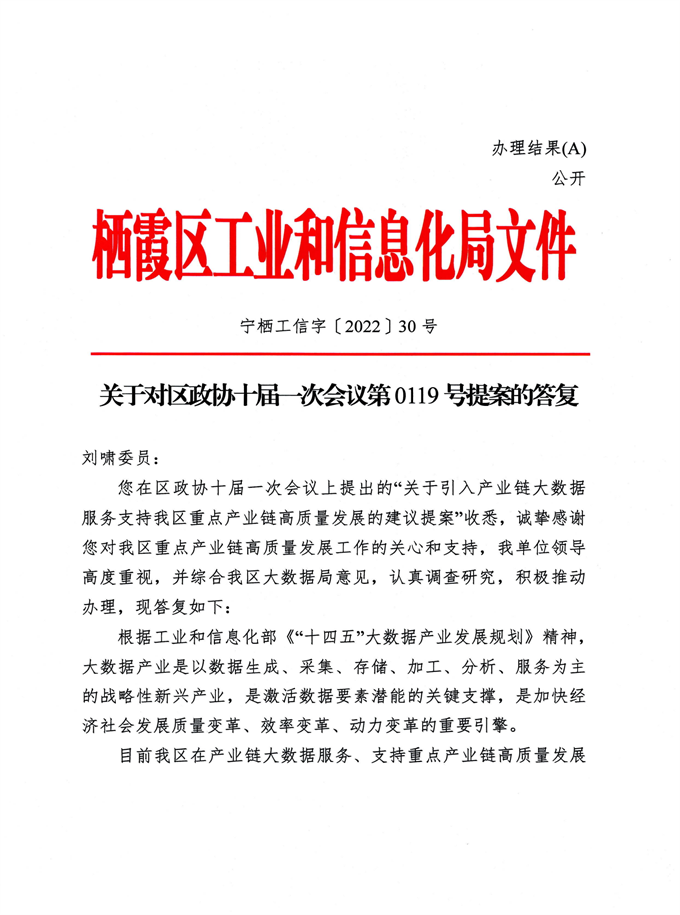關于對區政協十屆一次會議第0119號提案的答復