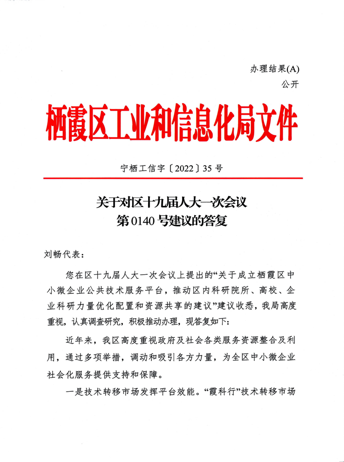 信息名稱:    關于對區十九屆人大一次會議第0140號建議的答復