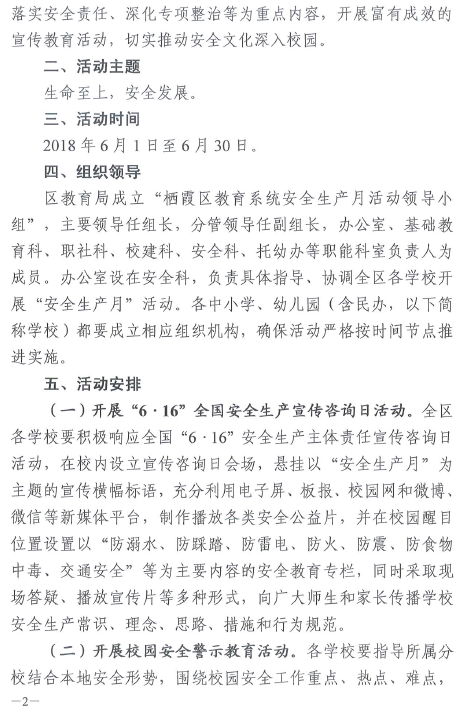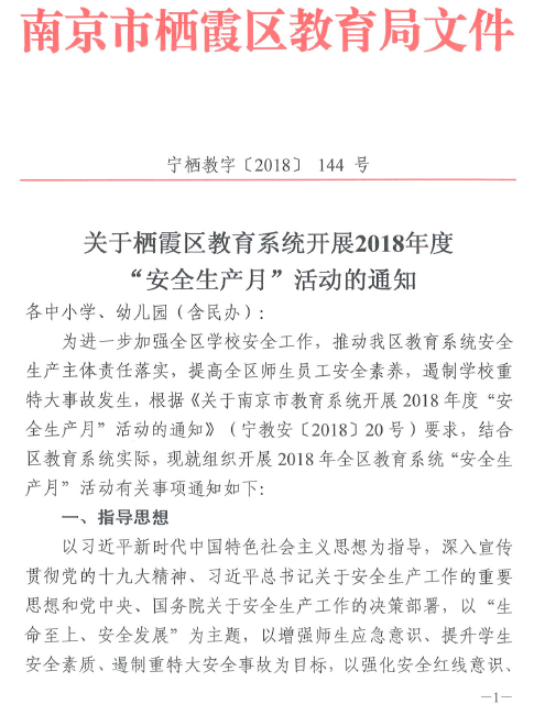 關于棲霞區教育系統開展2018年度“安全生產月”活動的通知