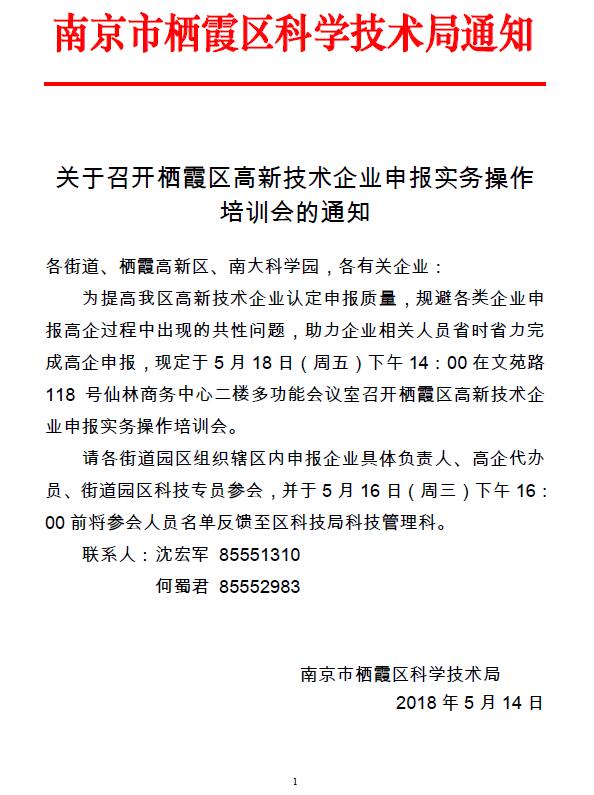 關于召開棲霞區高新技術企業申報實務操作培訓會的通知.pdf