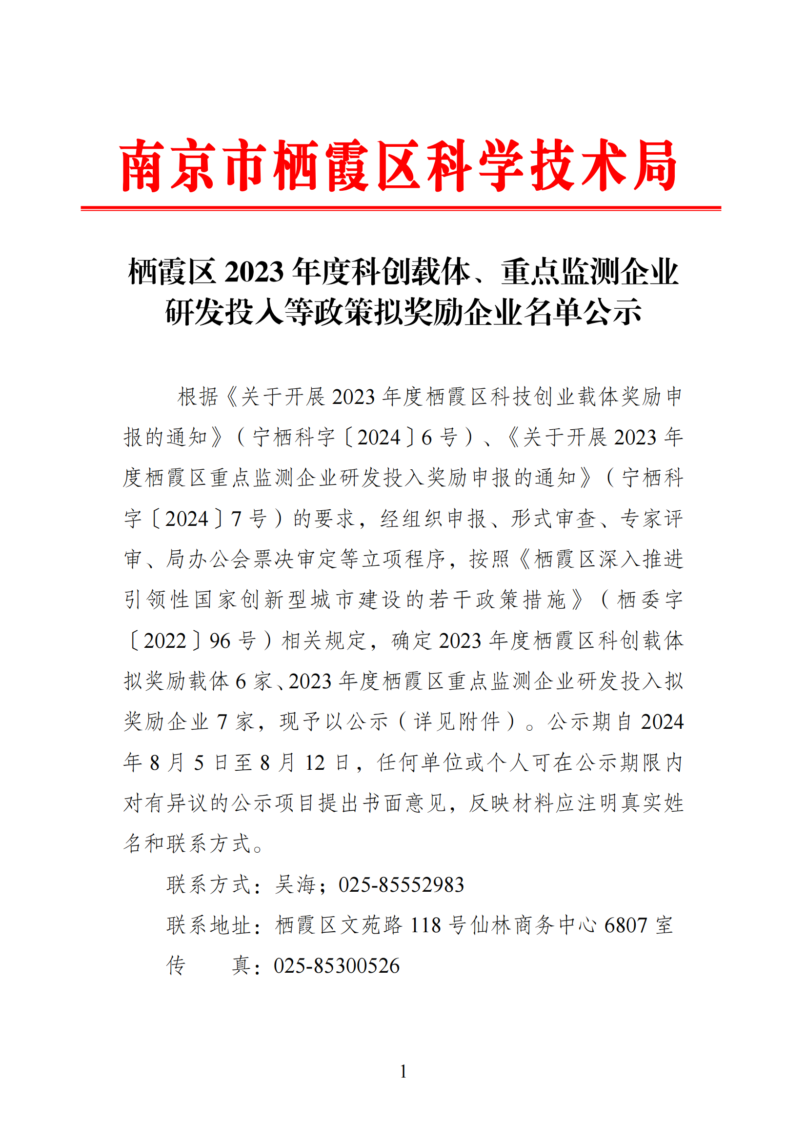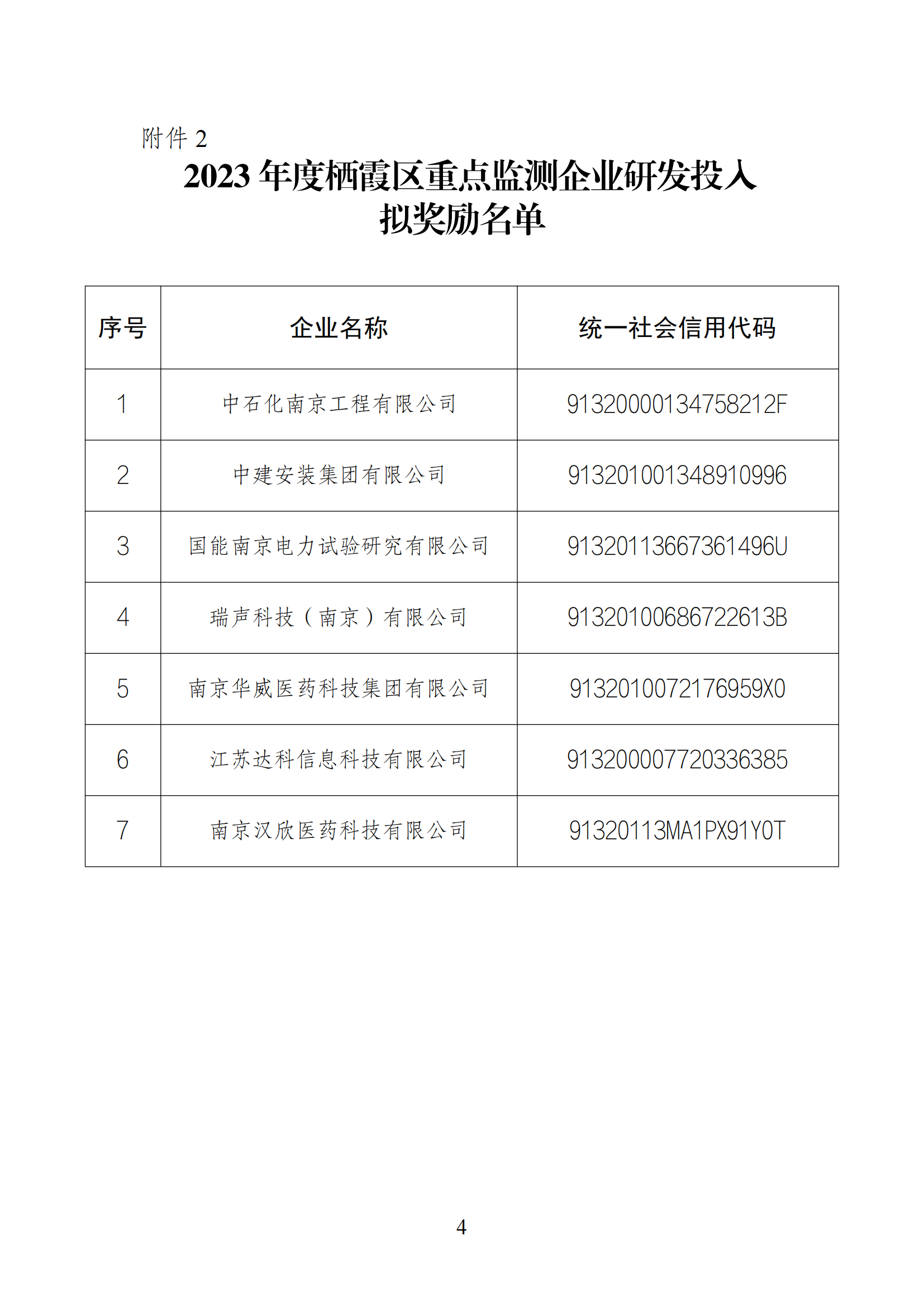 棲霞區2023年度科創載體、重點監測企業研發投入等政策擬獎勵企業名單公示