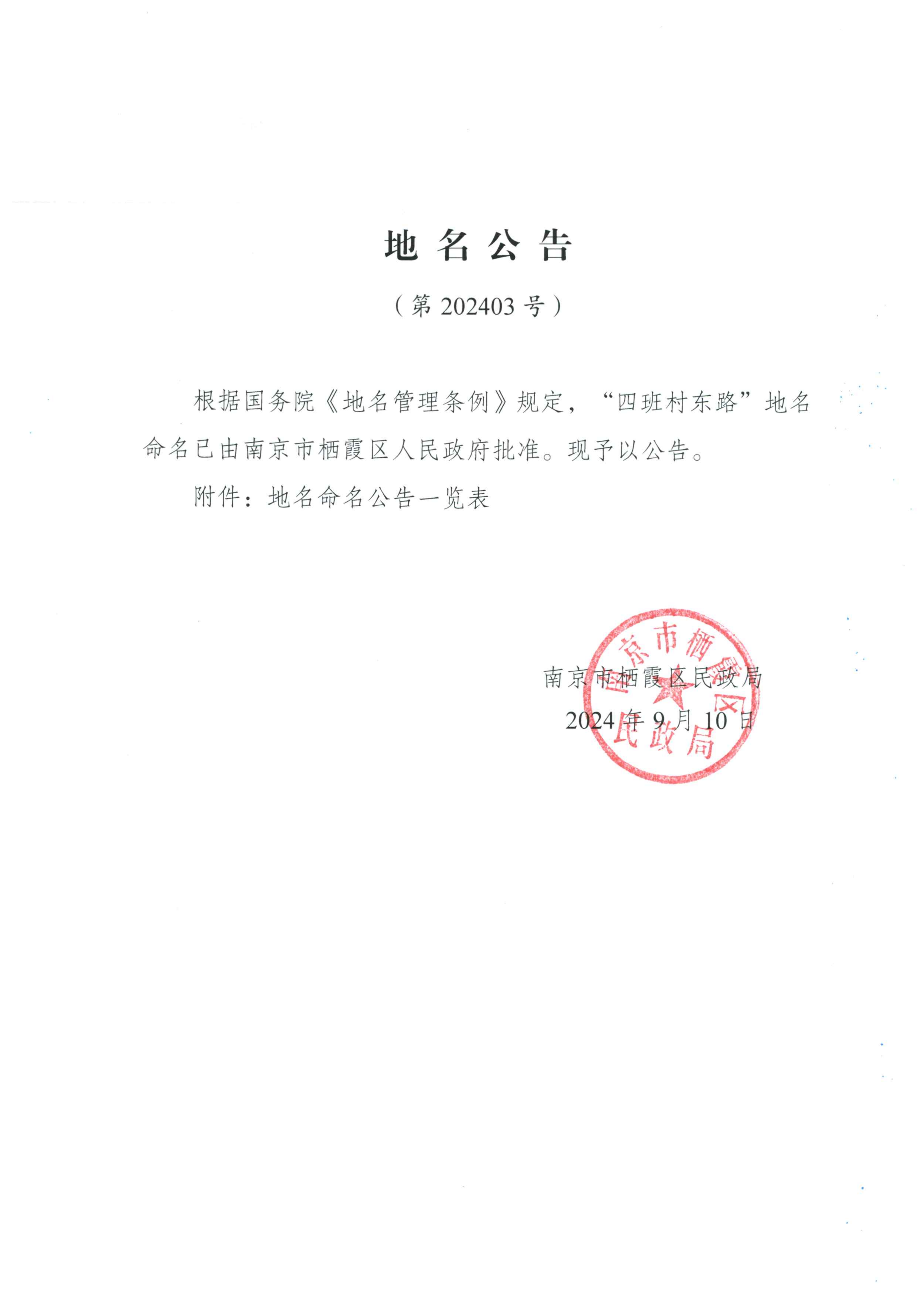 信息名稱:    地名公告(第202403號)