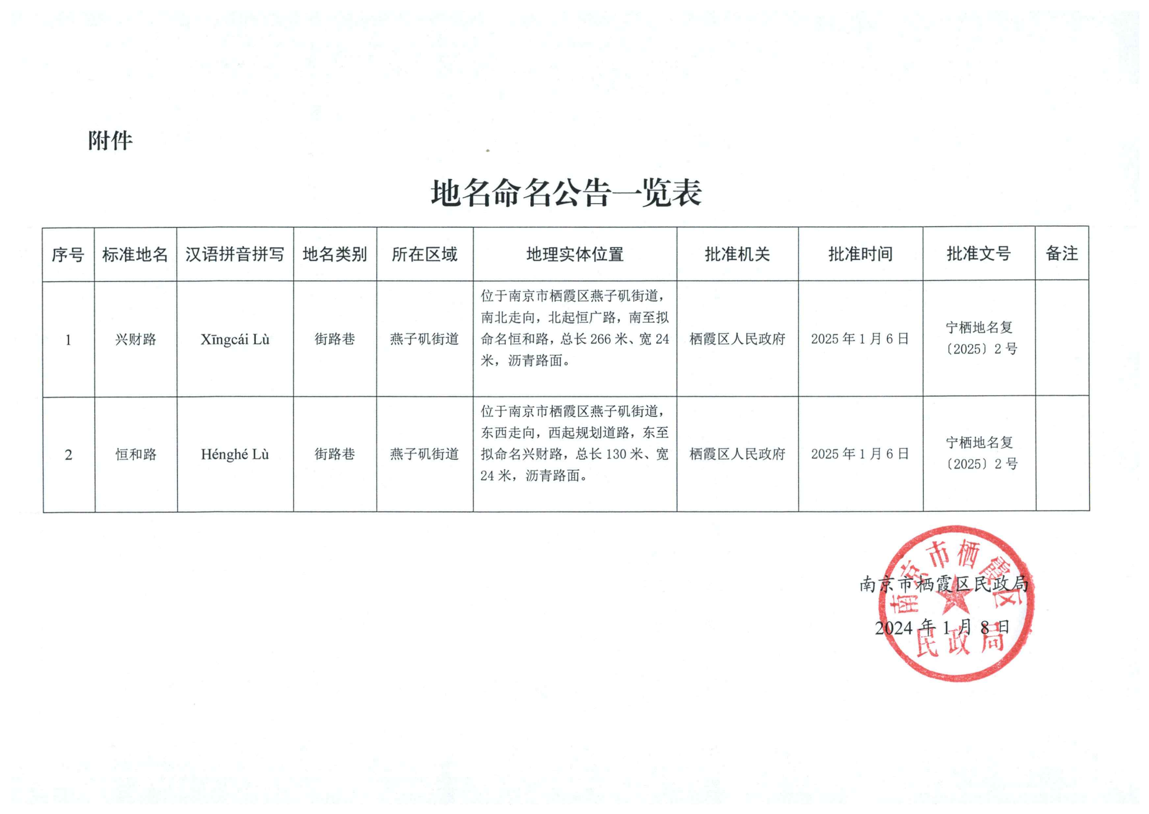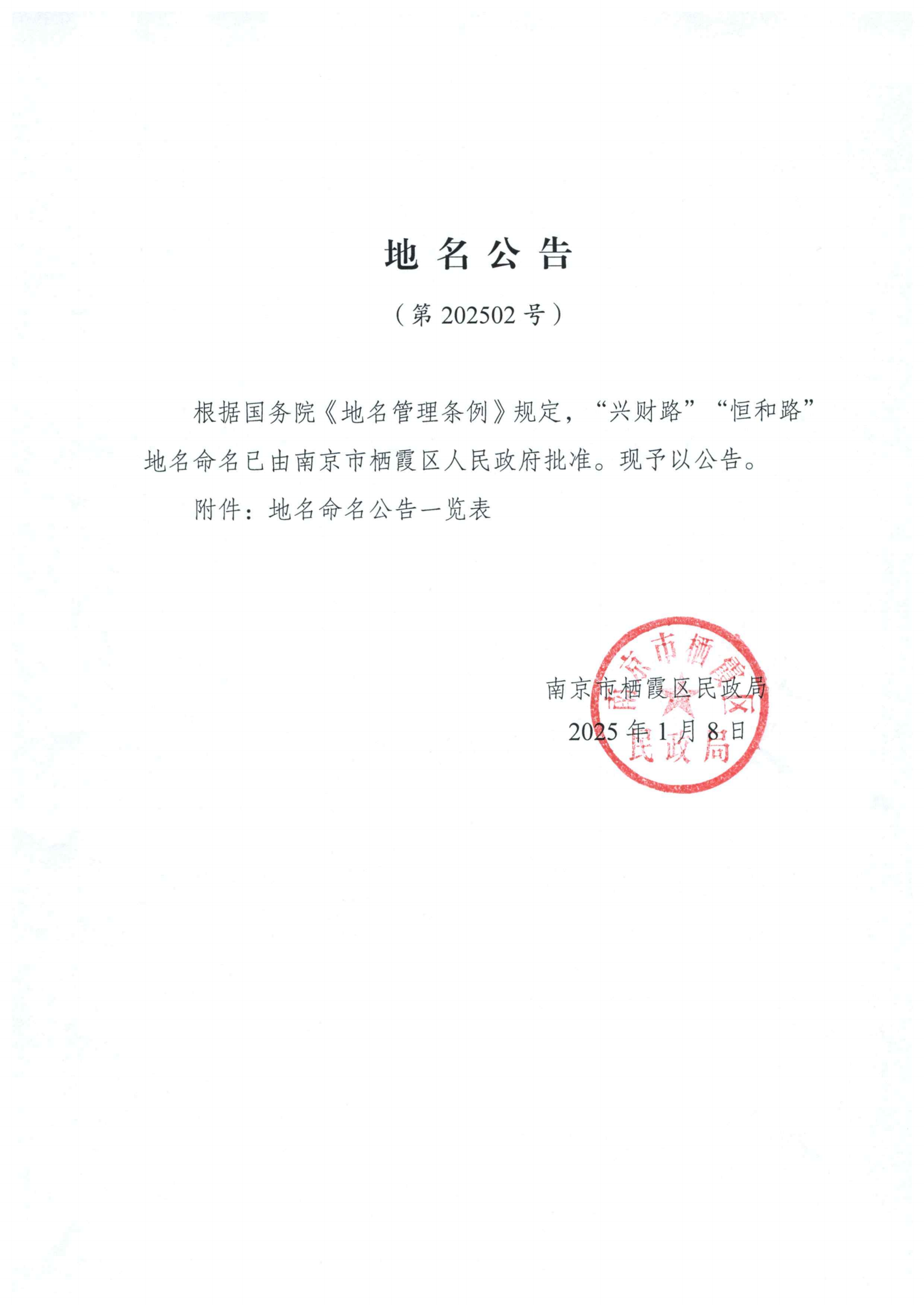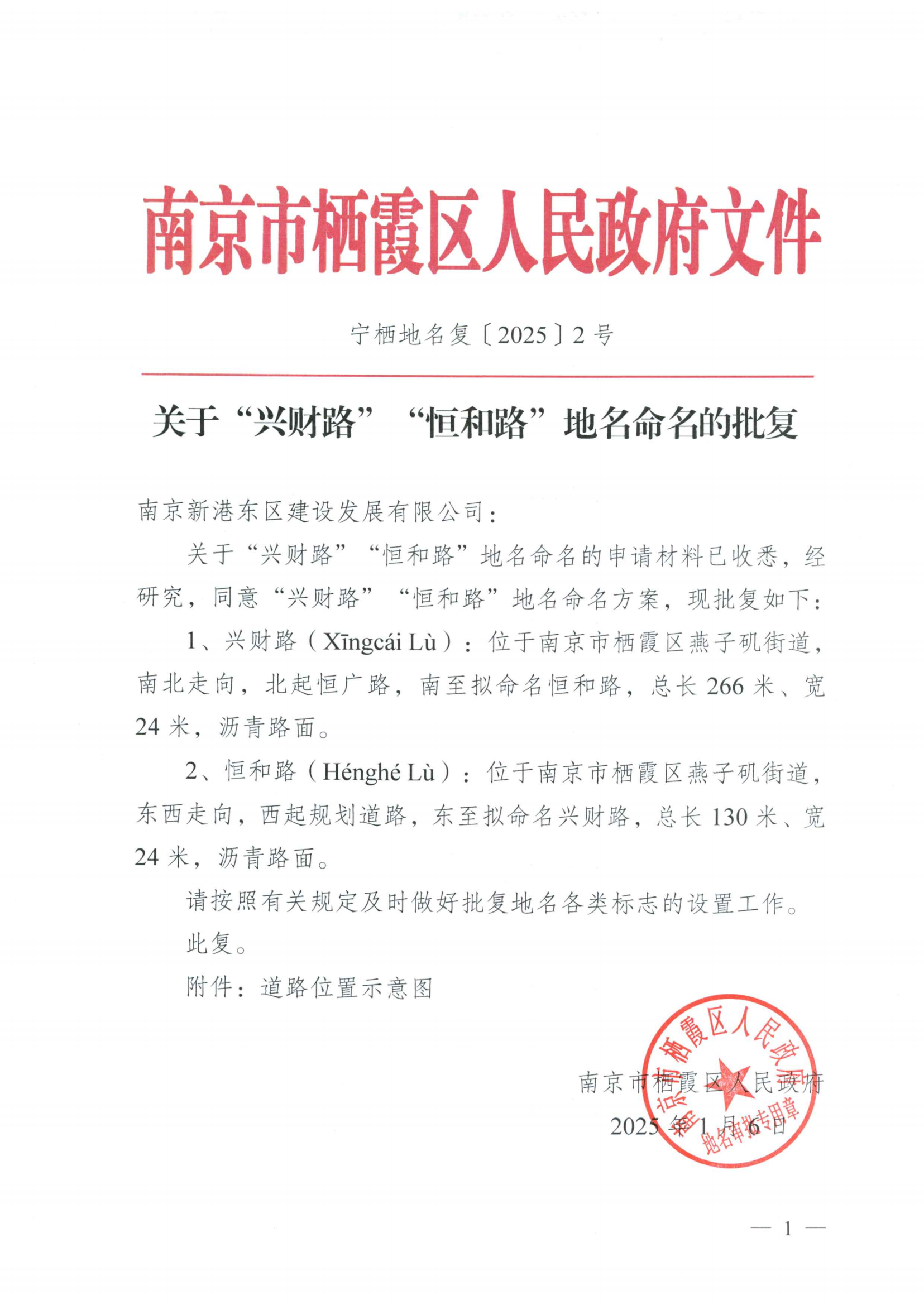 寧棲地名復(fù)〔2025〕2號—關(guān)于“興財路”“恒和路”地名命名的批復(fù)