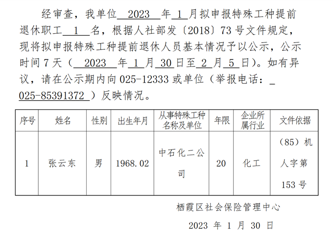 信息名稱:    南京市特殊工種提前退休人員情況公示