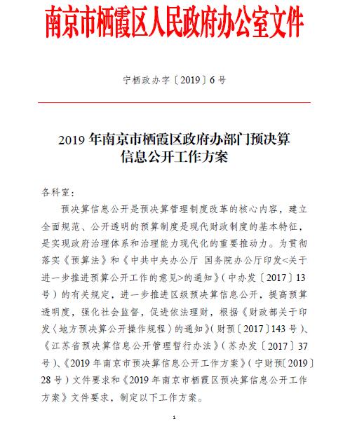 寧棲政辦字〔2019〕6號 2019年南京市棲霞區(qū)政府辦部門預(yù)決算信息公開工作方案.pdf