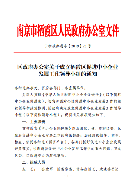 區(qū)政府辦公室關(guān)于成立棲霞區(qū)促進中小企業(yè)發(fā)展工作領(lǐng)導(dǎo)小組的通知