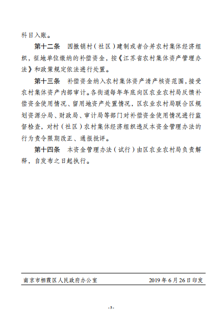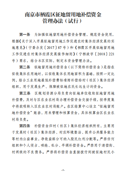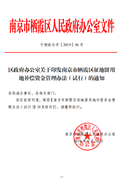 區政府辦公室關于印發南京市棲霞區征地留用地補償資金管理辦法(試行)的通知