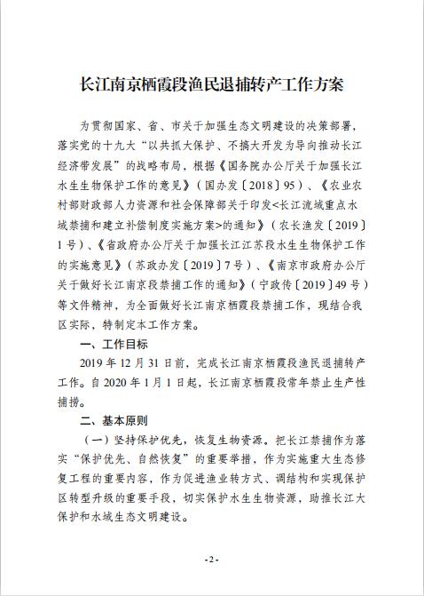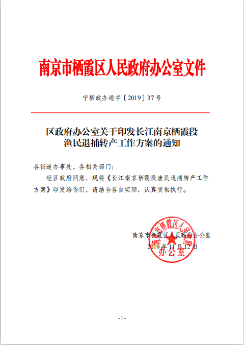 區(qū)政府辦公室關(guān)于印發(fā)長江南京棲霞段漁民退捕轉(zhuǎn)產(chǎn)工作方案的通知
