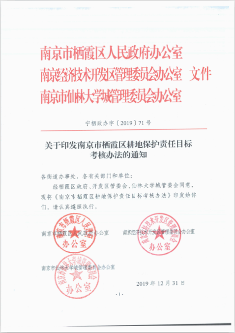 寧棲政辦字〔2019〕71號關(guān)于印發(fā)南京市棲霞區(qū)耕地保護責(zé)任目標考核辦法的通知.pdf
