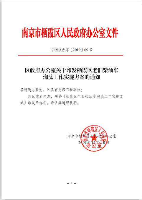 區政府辦公室關于印發棲霞區老舊柴油車淘汰工作實施方案的通知