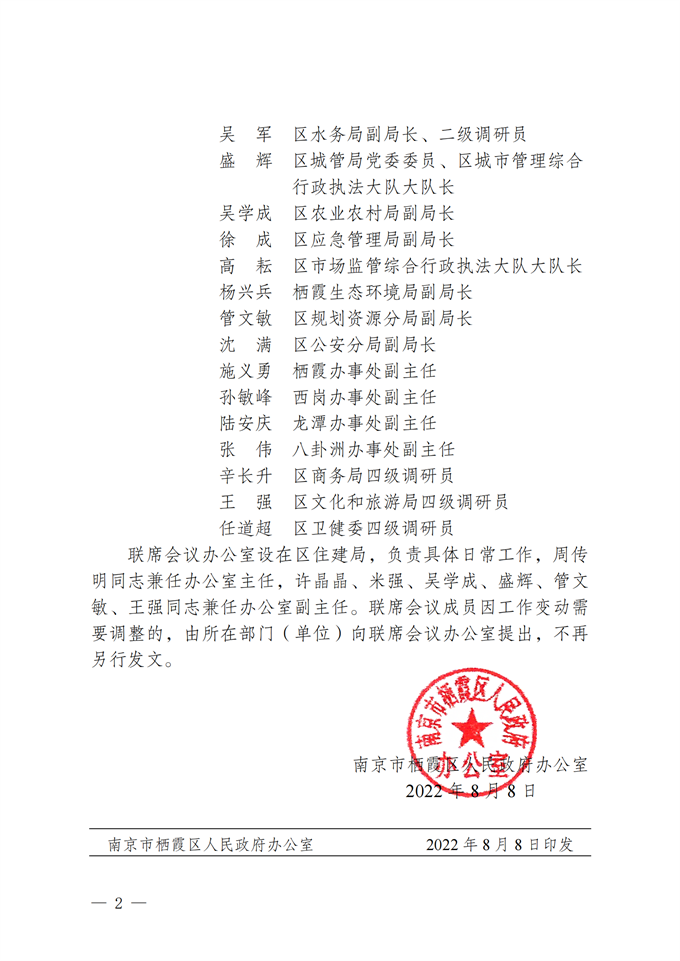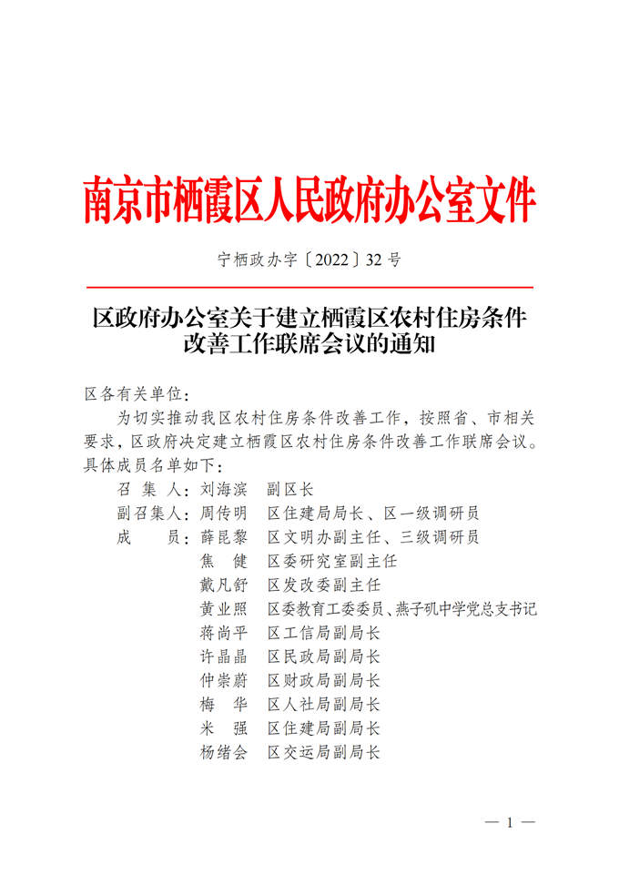 寧棲政辦字〔2022〕32號(hào) 區(qū)政府辦公室關(guān)于建立棲霞區(qū)農(nóng)村住房條件改善工作聯(lián)席會(huì)議的通知