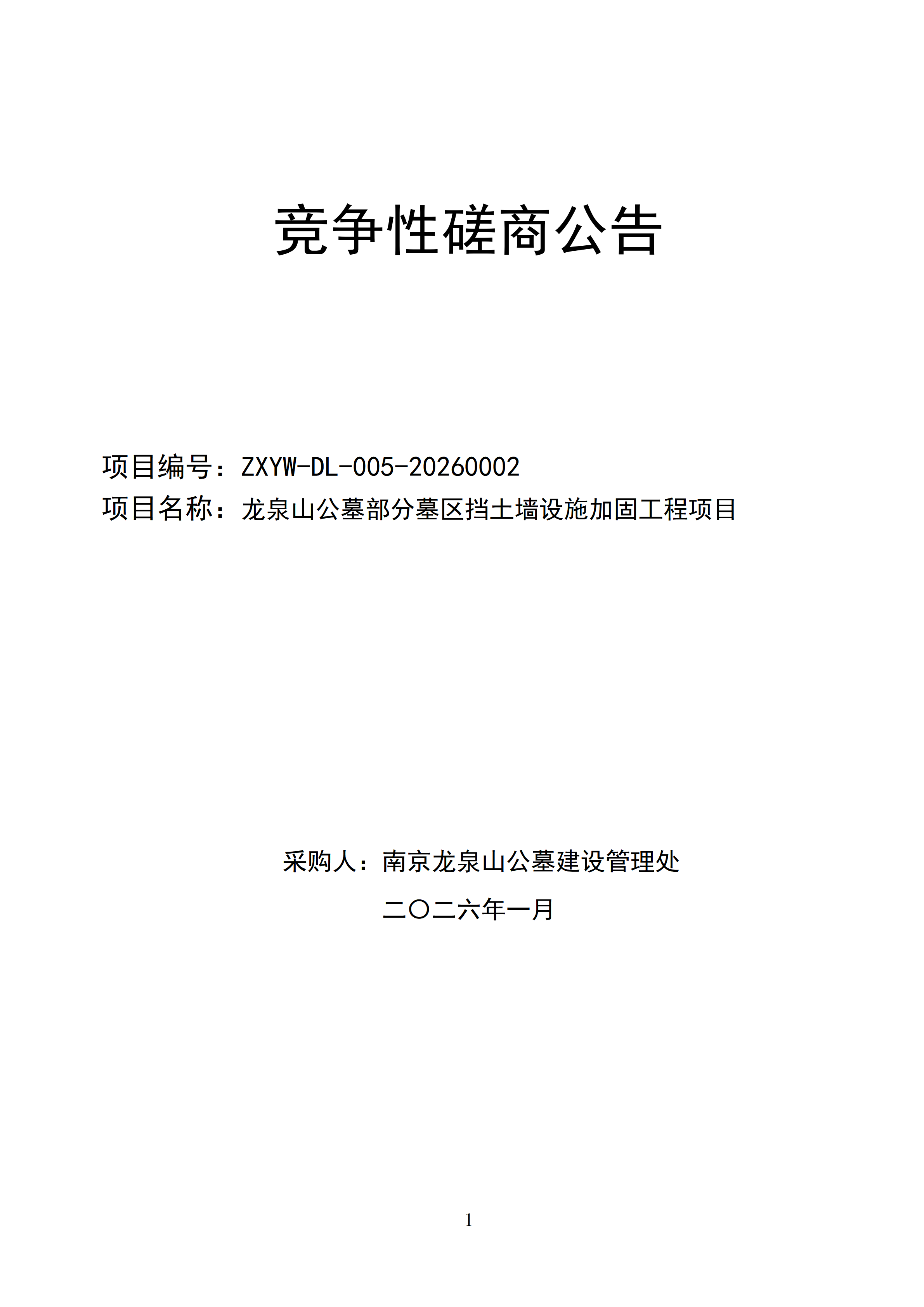 龍泉山公墓部分墓區擋土墻設施加固工程項目競爭性磋商公告