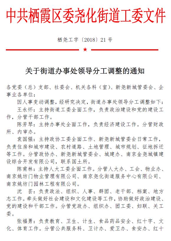 文  號:    棲堯工字〔2018〕21 號 關 鍵 詞:    分工