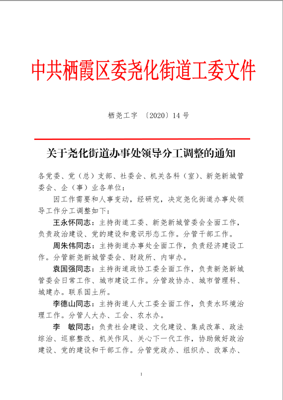 信息名稱:    關于堯化街道辦事處領導分工調整的通知