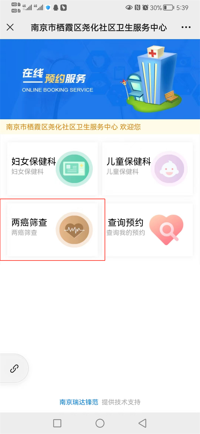 (2)點擊便民服務→預約服務→兩癌篩查;