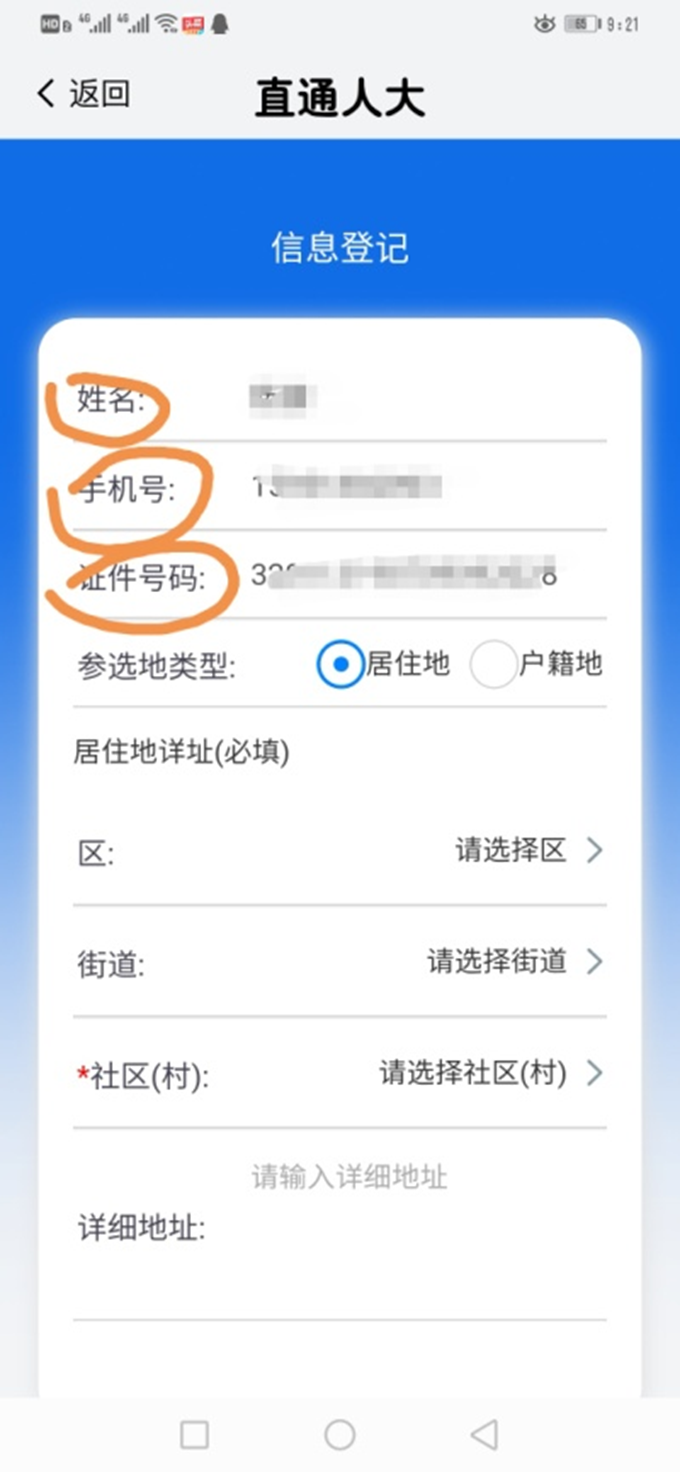 四、進入后進行信息登記,錄入姓名、手機號、證件號碼等信息