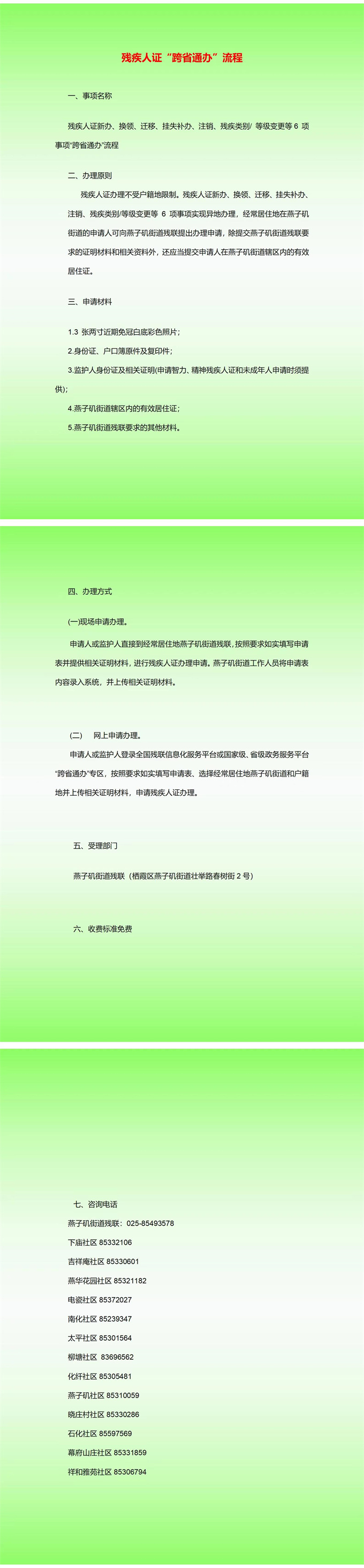信息名稱:    圖解:一圖解讀燕子磯街道殘疾人證“跨省通辦”流程