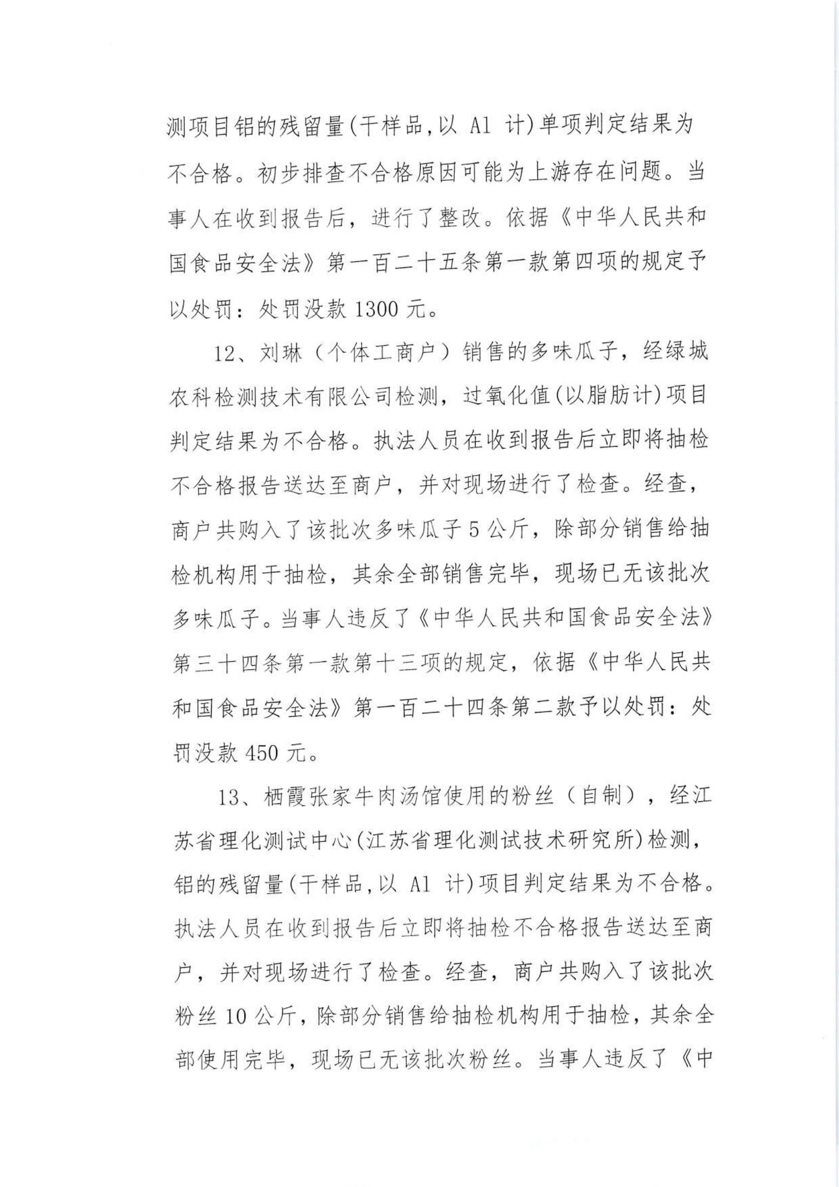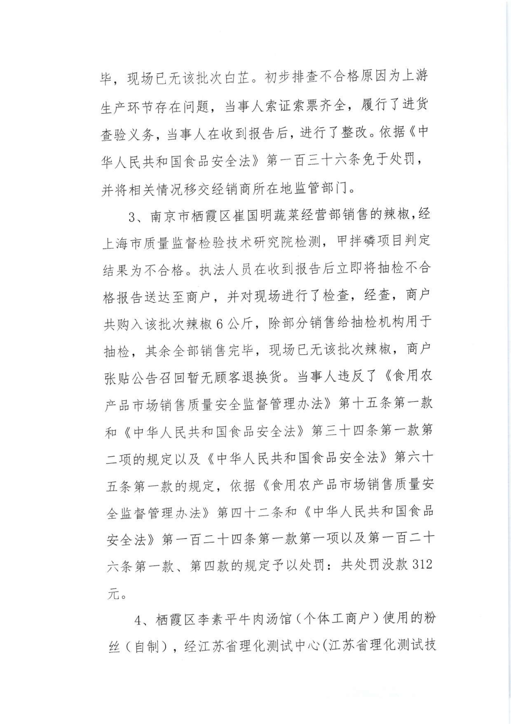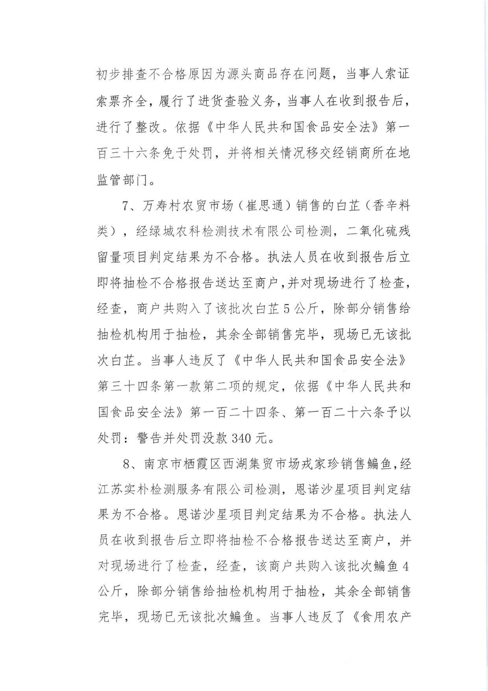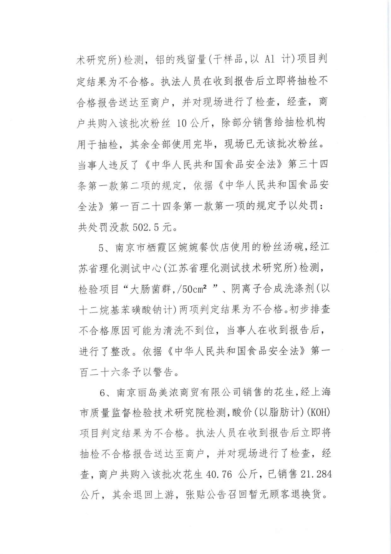 關于2024年棲霞區市場監管局部門市級抽檢不合格食品的核查處置情況的公告(9.14)