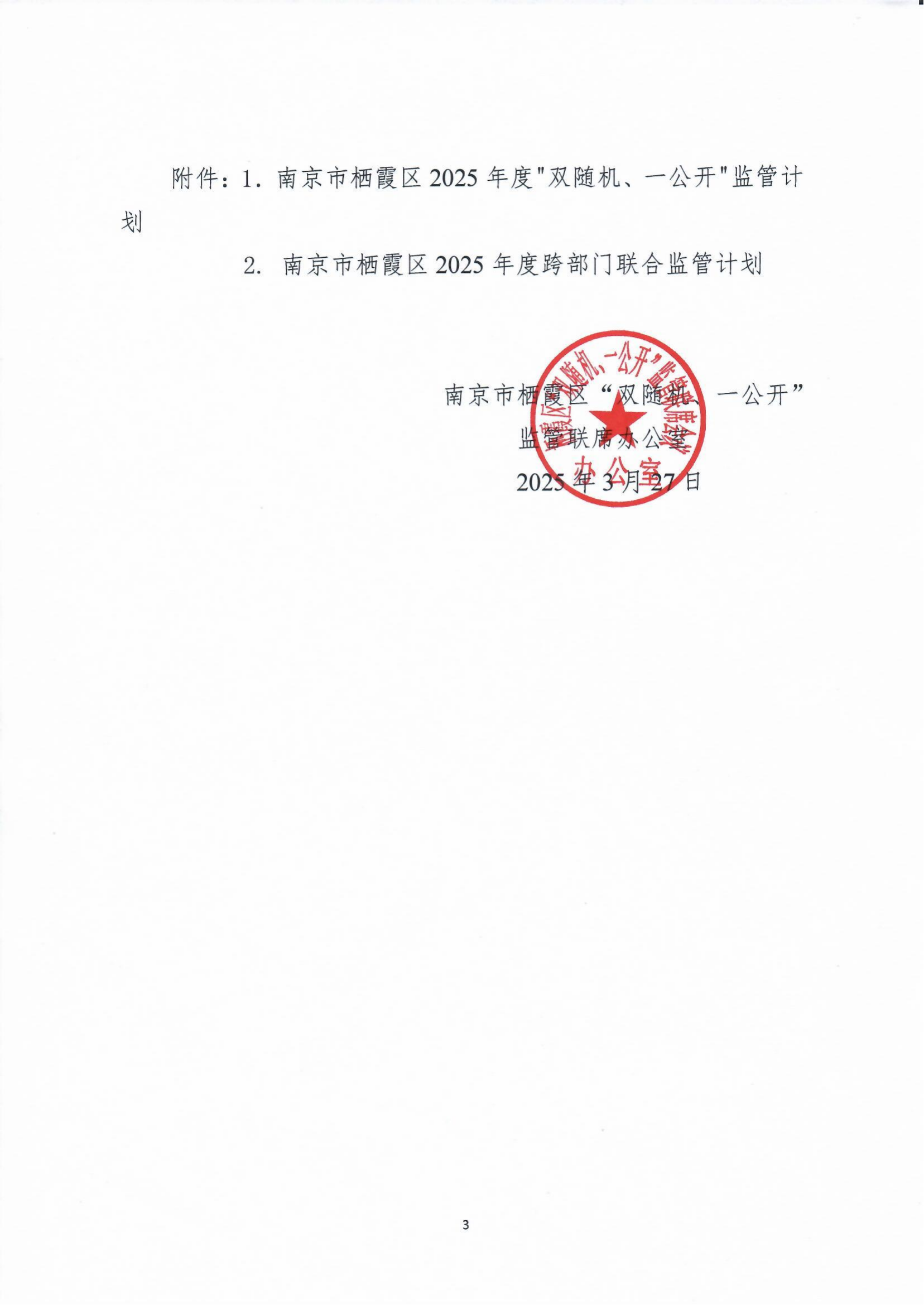 關于印發南京市棲霞區2025年度“雙隨機、一公開” 監管計劃和跨部門聯合監管計劃的通知.pdf