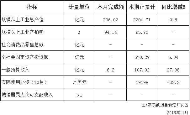 2016年11月份主要經濟指標完成情況